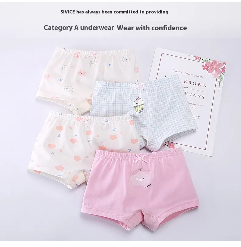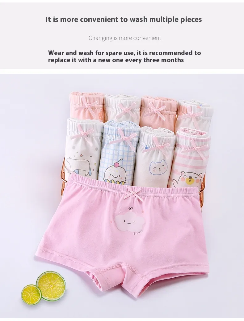 The Children's Underwear Women's Pure Cotton Cartoon Boxers combine comfort, durability, and fun design for young girls. Made from 100% pure cotton, these boxers are soft, breathable, and gentle on sensitive skin, providing the perfect choice for everyday wear. Featuring charming cartoon prints, these underwear offer both style and comfort for your little one, ensuring they feel confident and happy throughout the day.