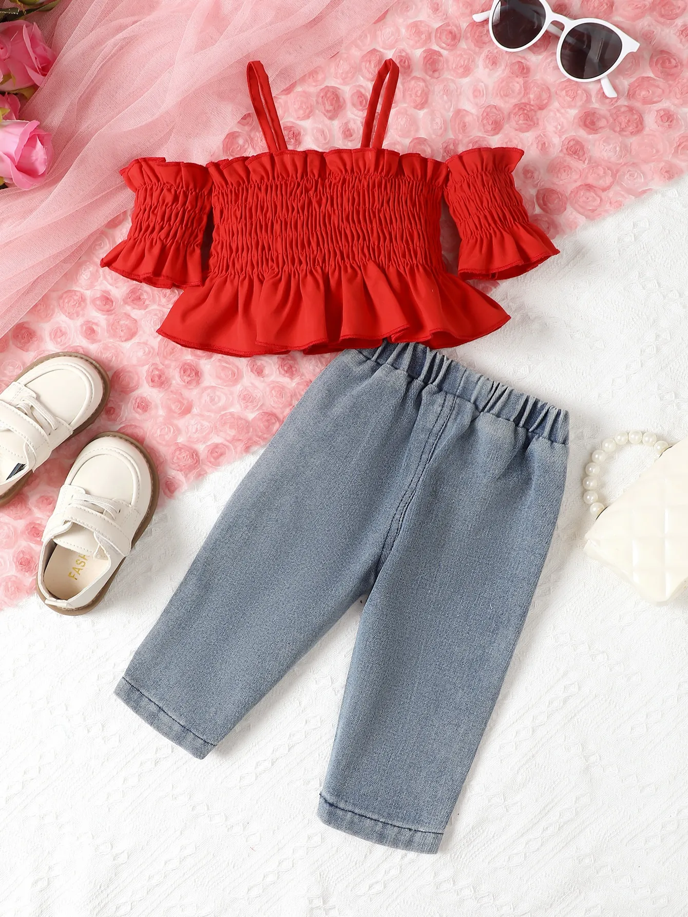 Whether it's for a day at the park, a family outing, or a busy day of play, the Children's Work Clothes Solid Color Vest Top and Jeans set offers the perfect blend of practicality and style. With a versatile design, it's easy to pair with other accessories and shoes, making it an essential addition to your child’s wardrobe.