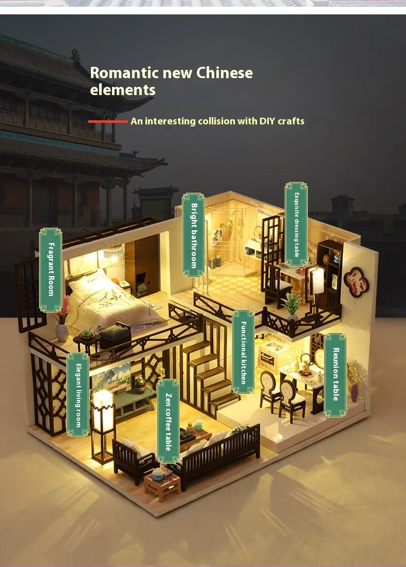 Chinese Style Handmade Miniature Cottage – New Chinese Simple Design