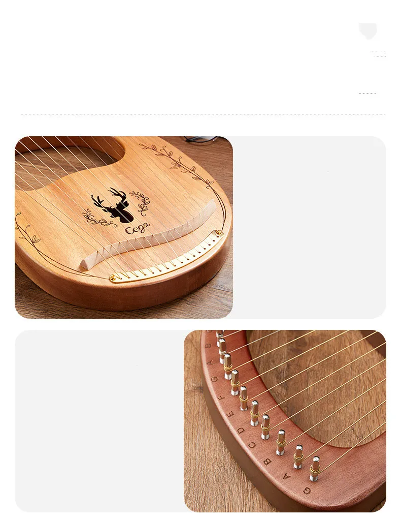 The Chinese table harp, also known as the "Guzheng," is a traditional Chinese stringed instrument with a long history, typically featuring 21 strings. Played by plucking the strings with the fingers or with plectra, the Guzheng produces a wide variety of sounds, from soft and melodic to vibrant and dynamic. Its distinct, resonant tone is often used in Chinese classical music but has also been adapted for contemporary compositions and performances. The table harp is typically placed on a table or a stand and played while seated, offering a captivating musical experience that captures the essence of Chinese musical tradition.