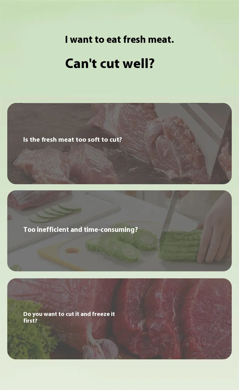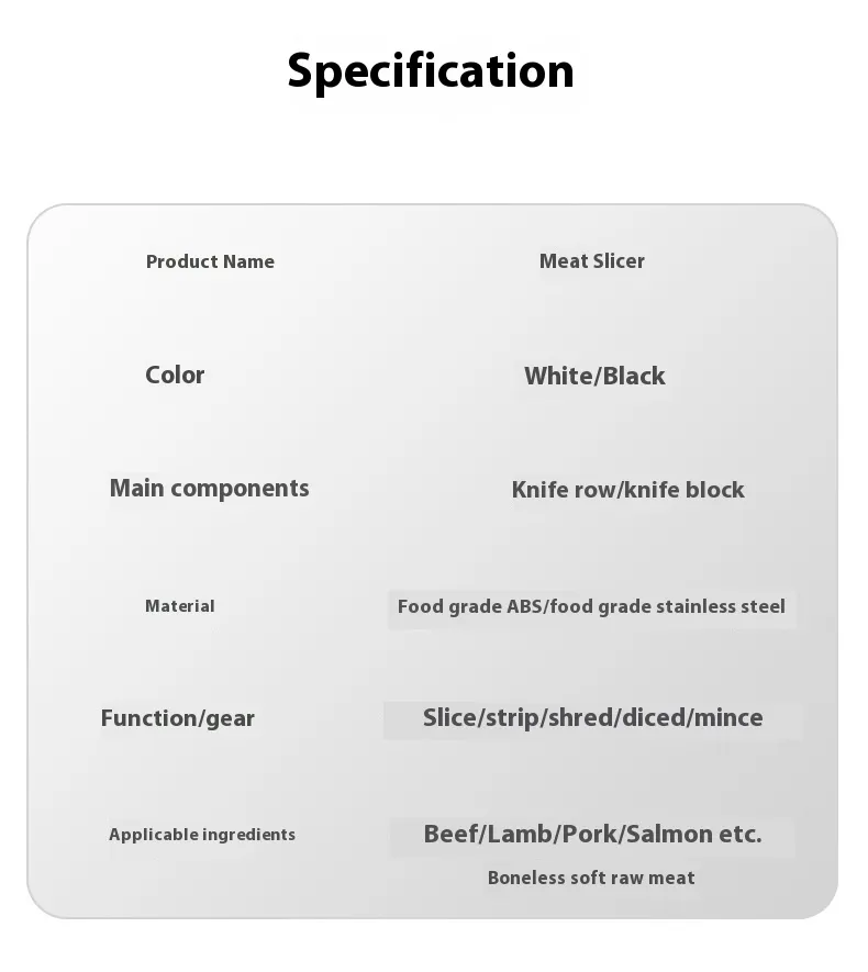 While “fast meat slice” might be the highlight, many choppers handle vegetables, fruits, cheeses, or even certain bread. A multi-function tag suggests the device’s design can adapt to multiple ingredients beyond raw meat. For example, you might use it to: