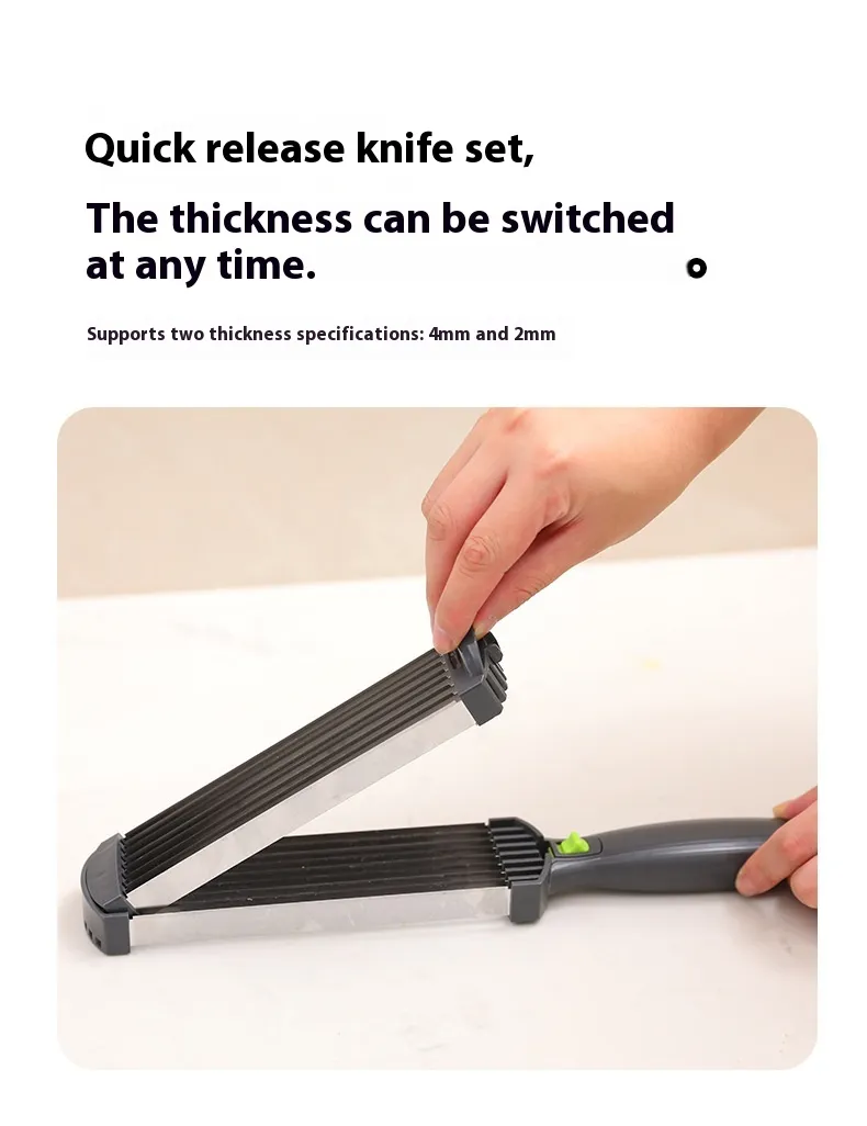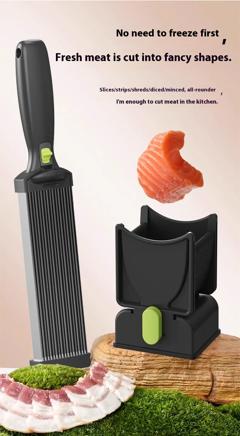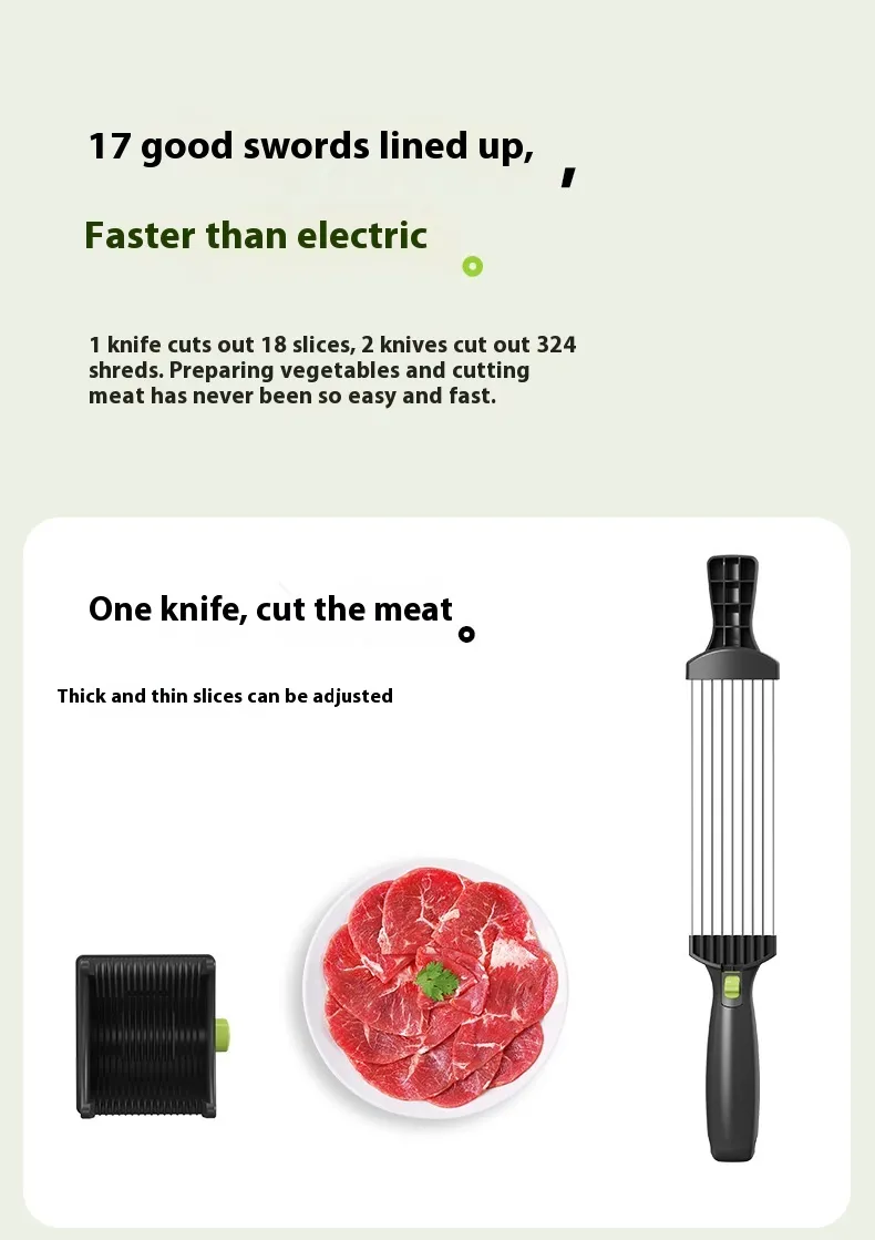 Although knives remain indispensable for many tasks, modern living and tight schedules call for tools that accelerate meal prep. Cutting large quantities of meat, slicing bulky vegetables, or producing uniform cuts are time-intensive chores with standard knives. Hand fatigue, varying slicing thickness, or risk of accidents are also concerns. Thus, specialized choppers and slicers have grown in popularity, offering user-friendly solutions for swift and consistent results. This Stainless Steel Household Fast Meat Slice Multi-Function device stands at the forefront of such innovations, tackling everyday slicing needs effectively.
