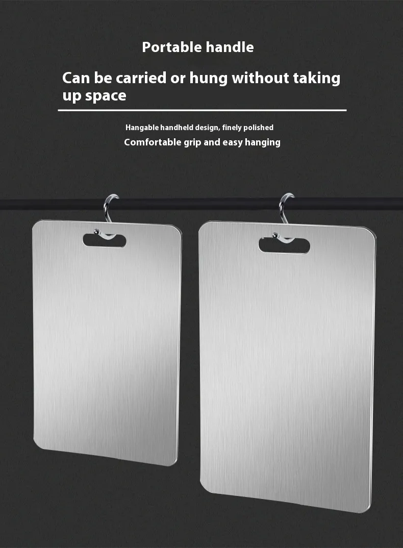 4. Clean Kitchen Solution: By providing a convenient hangings solution, our titanium cutting board simplifies cleanup and eliminates