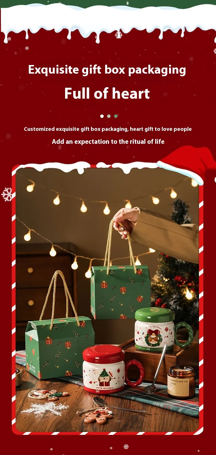 The Christmas Ceramic Cup Gift Suit often comes in a beautifully designed gift box, making it ready for gifting. The box is usually decorated with Christmas motifs, enhancing the gift's festive appeal. Whether you're giving it to a loved one or using it as a corporate gift, the packaging ensures your gift is both thoughtful and attractive.