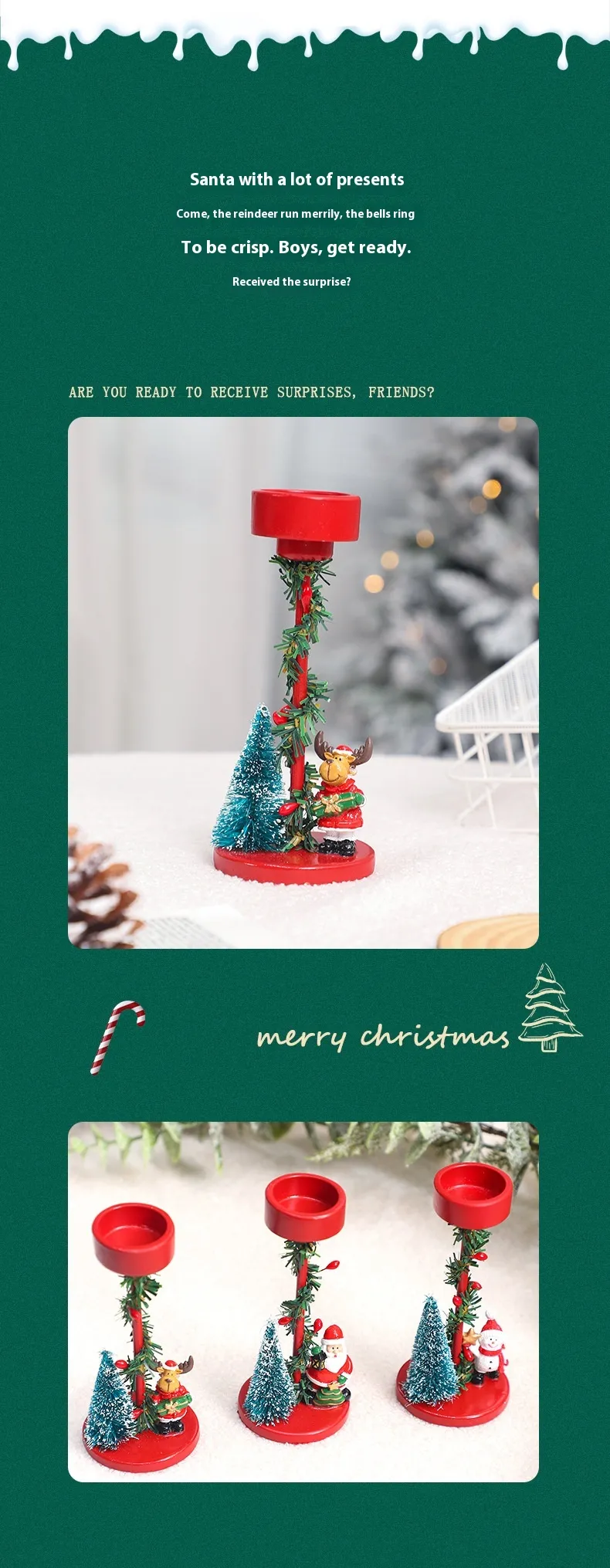 - Warm Holiday Ambiance: The candlestick design allows you to add a candle, creating a soft, warm glow that fills the room with holiday cheer. Light it during family gatherings or cozy evenings to create a welcoming atmosphere.