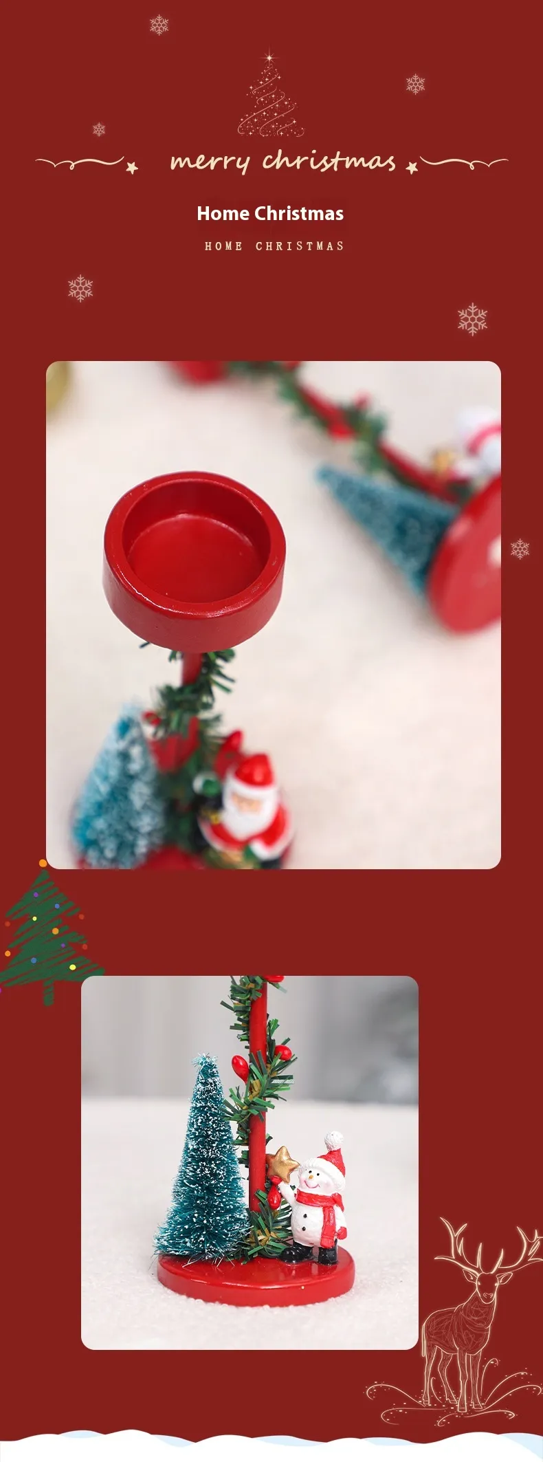 Place the Christmas Decorations Desktop Resin Christmas Tree Elderly Candlestick on your mantelpiece alongside other Christmas decorations. Its elegant design will complement garlands, stockings, and other festive elements, creating a stunning holiday display.