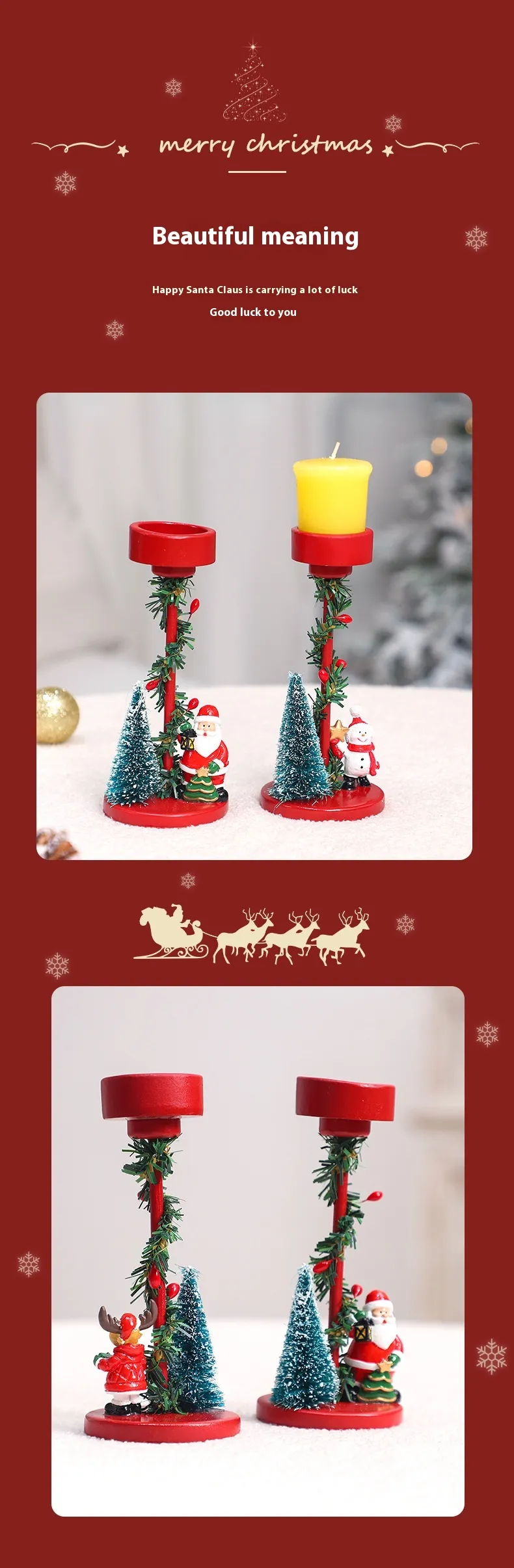 The addition of a candle to the candlestick design creates a soft, flickering light that adds warmth and charm to your holiday gatherings. The combination of light and festive decorations helps create a cozy, inviting ambiance for friends and family to enjoy.
