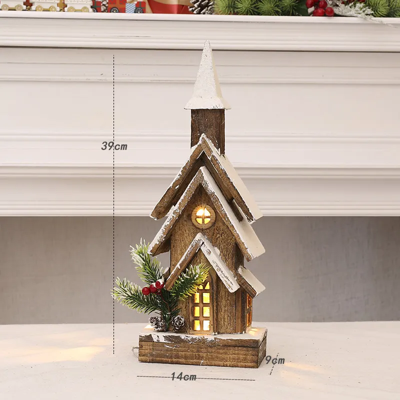 Christmas Decorations Wooden House Castle With Lights Ornaments