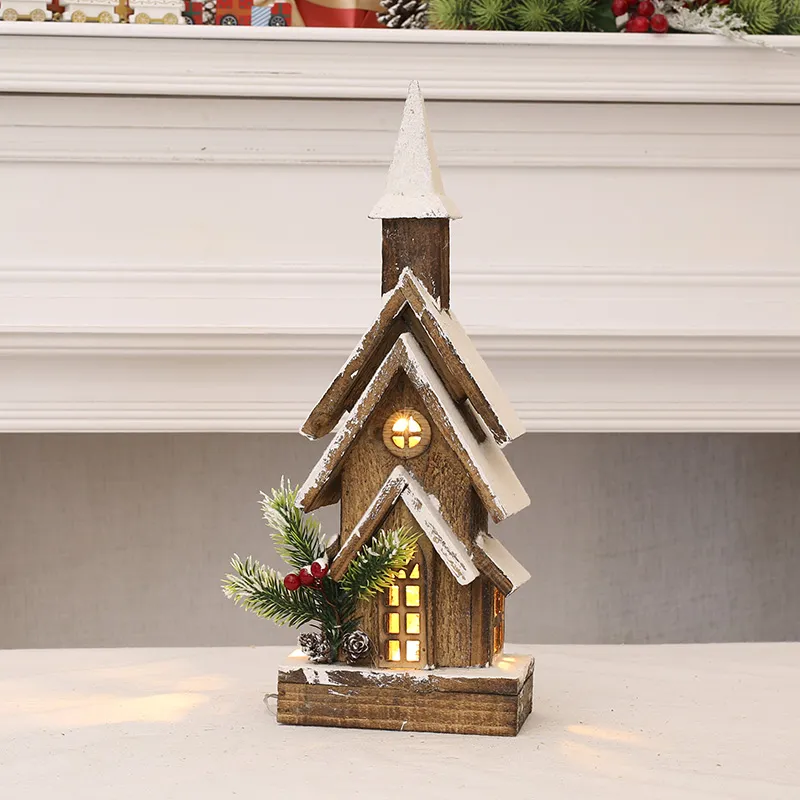 Christmas Decorations Wooden House Castle With Lights Ornaments