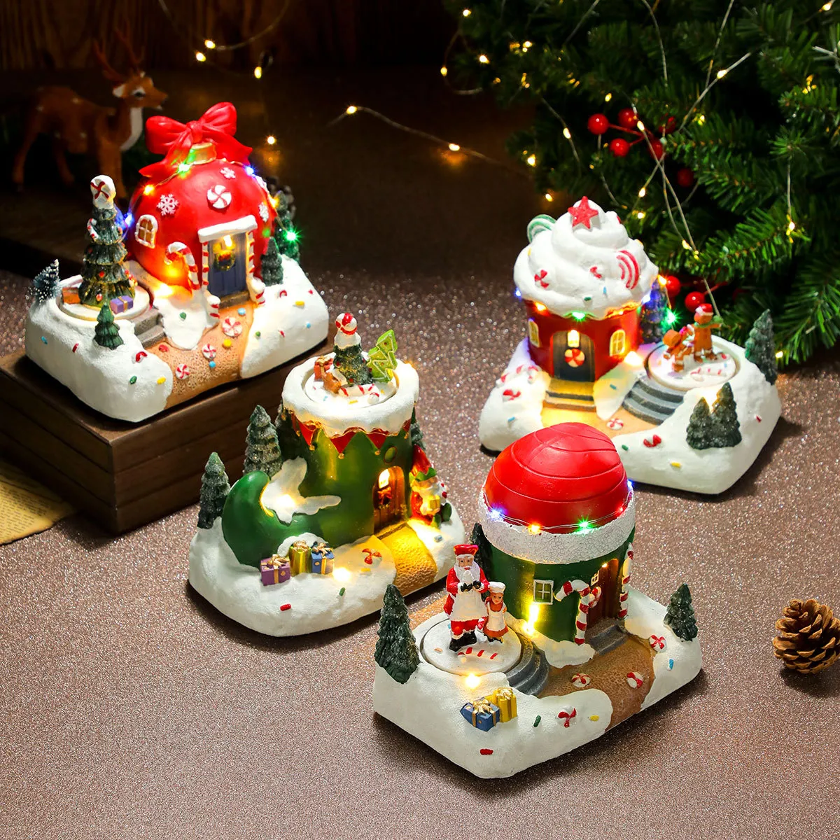 Christmas Rotating Resin Luminous Music Box Ornaments
