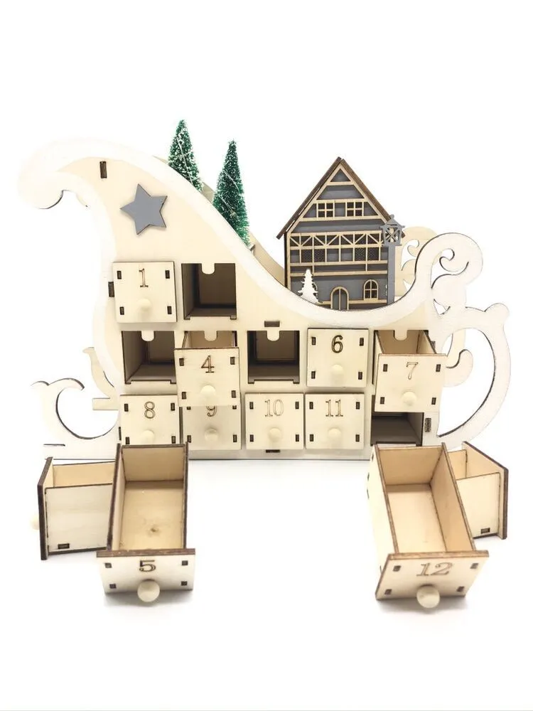 Whether you fill it with small chocolates, festive trinkets, or handwritten notes for loved ones, this sleigh-shaped calendar is perfect for creating a sense of excitement and wonder during the holiday season. Ideal for families, children, or as a unique gift, it transforms the classic advent calendar into something more festive and memorable.