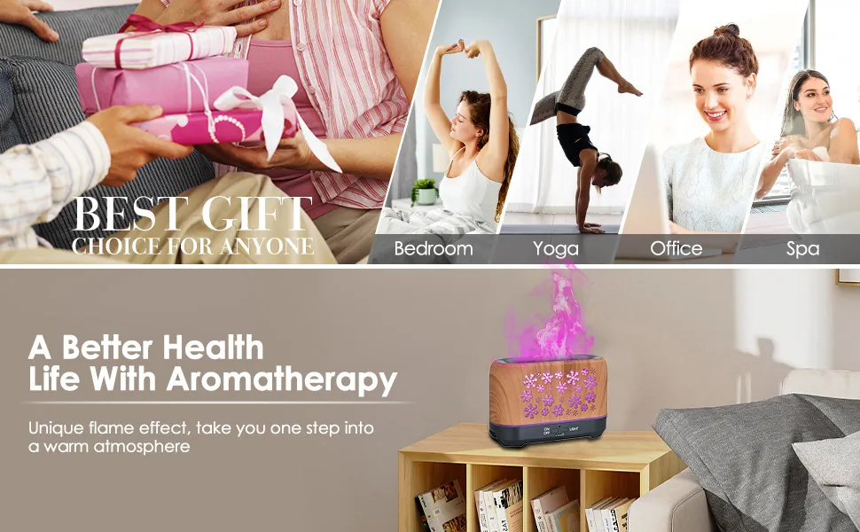 3.【MULTIPURPOSE USE AIR DIFFUSER】: Our flame oil diffuser can be used as an aromatherapy diffuser, mist humidifier, romantic mood light, and