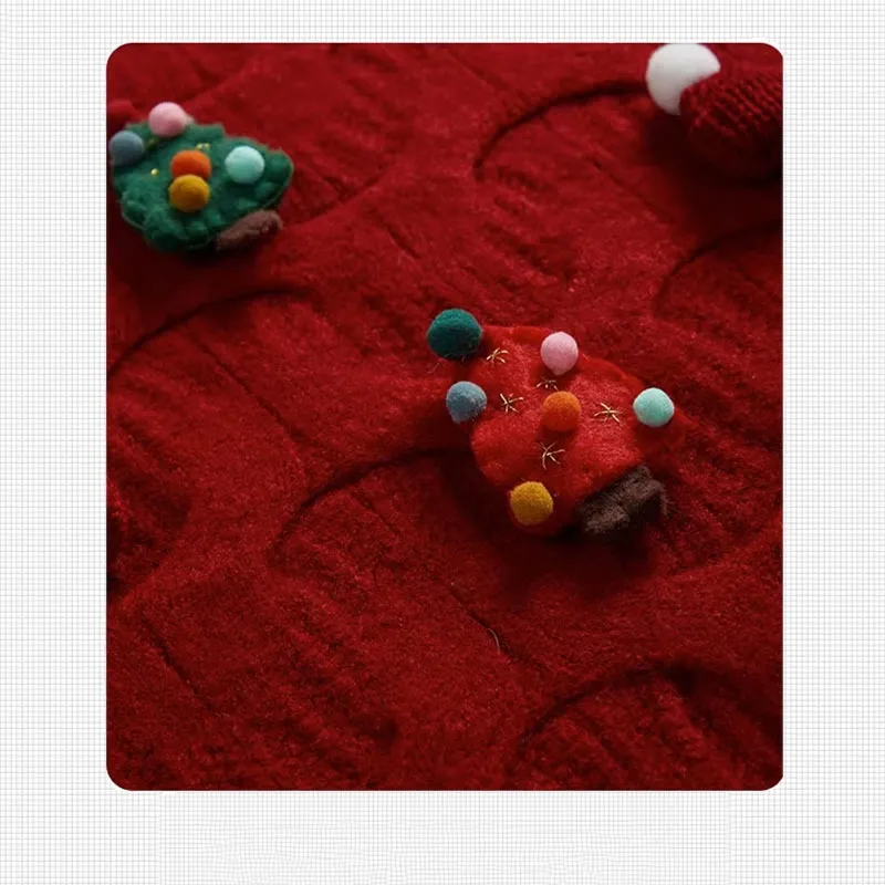 The color palette of the Christmas Top features rich, holiday-inspired hues such as red, green, white, and gold. These traditional Christmas colors are enhanced by the three-dimensional decorations, creating a lively, eye-catching piece that’s sure to put you in the holiday spirit. The bold colors make this knitwear ideal for Christmas parties, festive gatherings, or simply enjoying the holiday season in style.