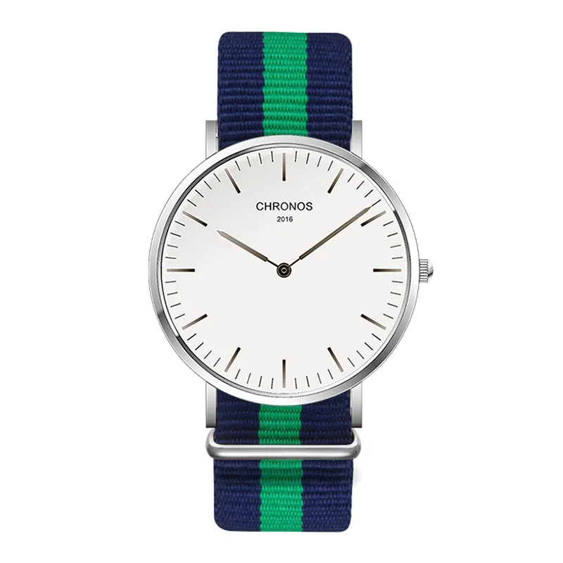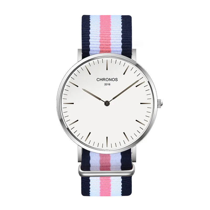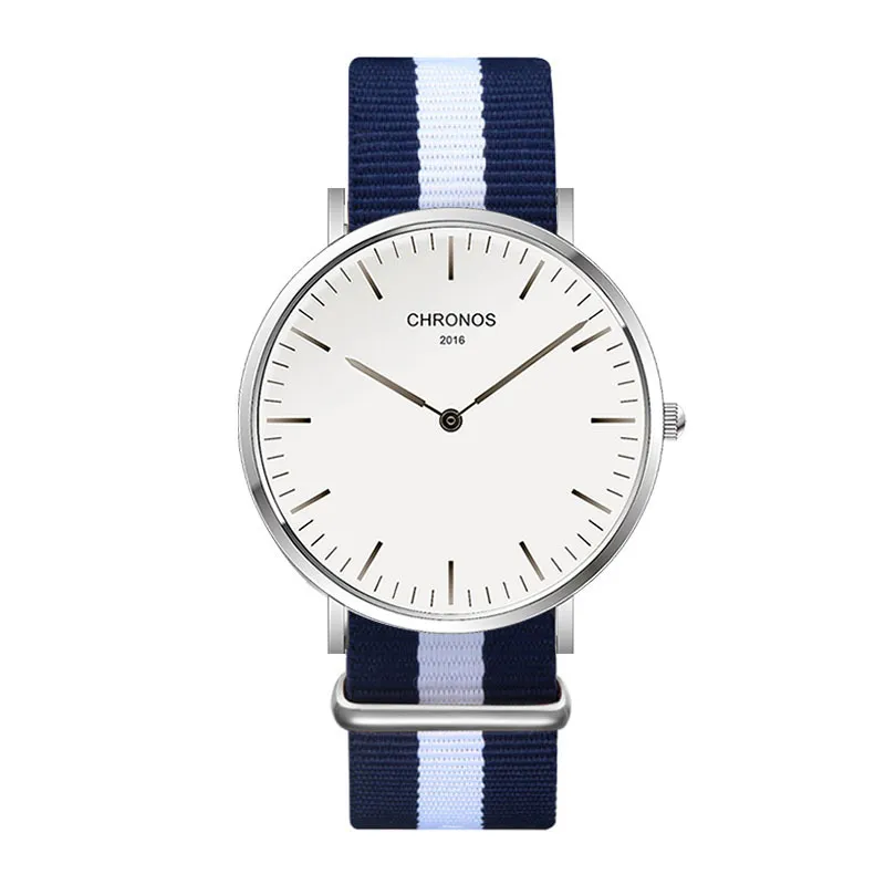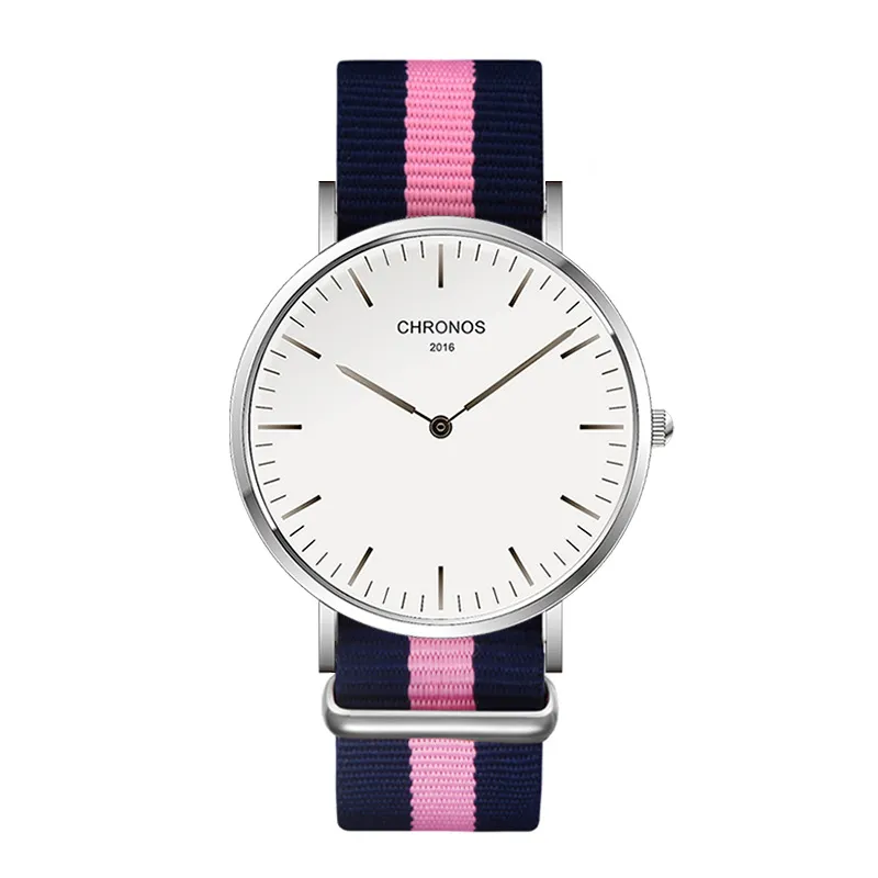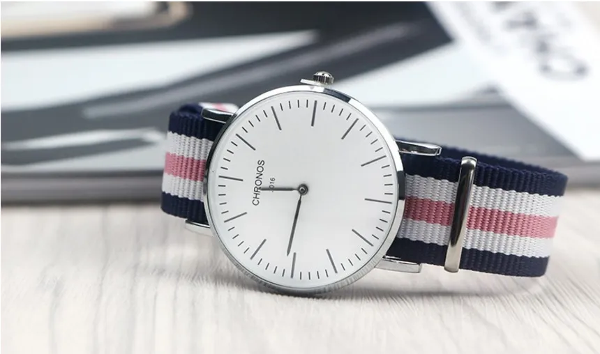 CHRONOS Watch Nylon Knitted Watchband Two Needle Cloth Button Couple Watch