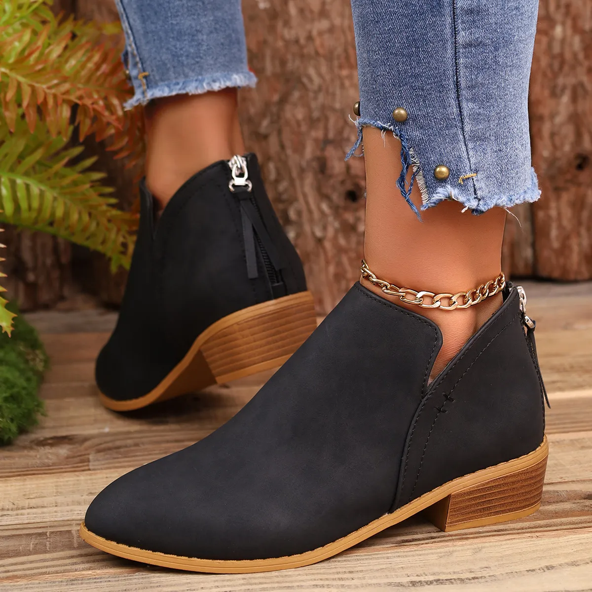 Chunky Heel Pointed Toe Ankle Boots