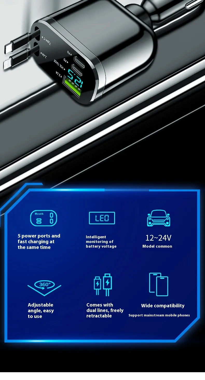 Keep your devices charged on the go with the Cigarette Lighter Folding Double Flexible Wire Car Charger, designed for drivers and travellers in New Zealand. This versatile car charger provides fast, reliable charging for multiple devices, ensuring you stay connected wherever the road takes you.