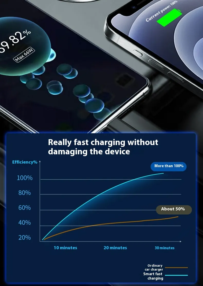 Equipped with smart charging technology, this car charger delivers stable and efficient power. Built-in protections prevent overcurrent, overvoltage, and overheating, keeping your devices safe while charging.