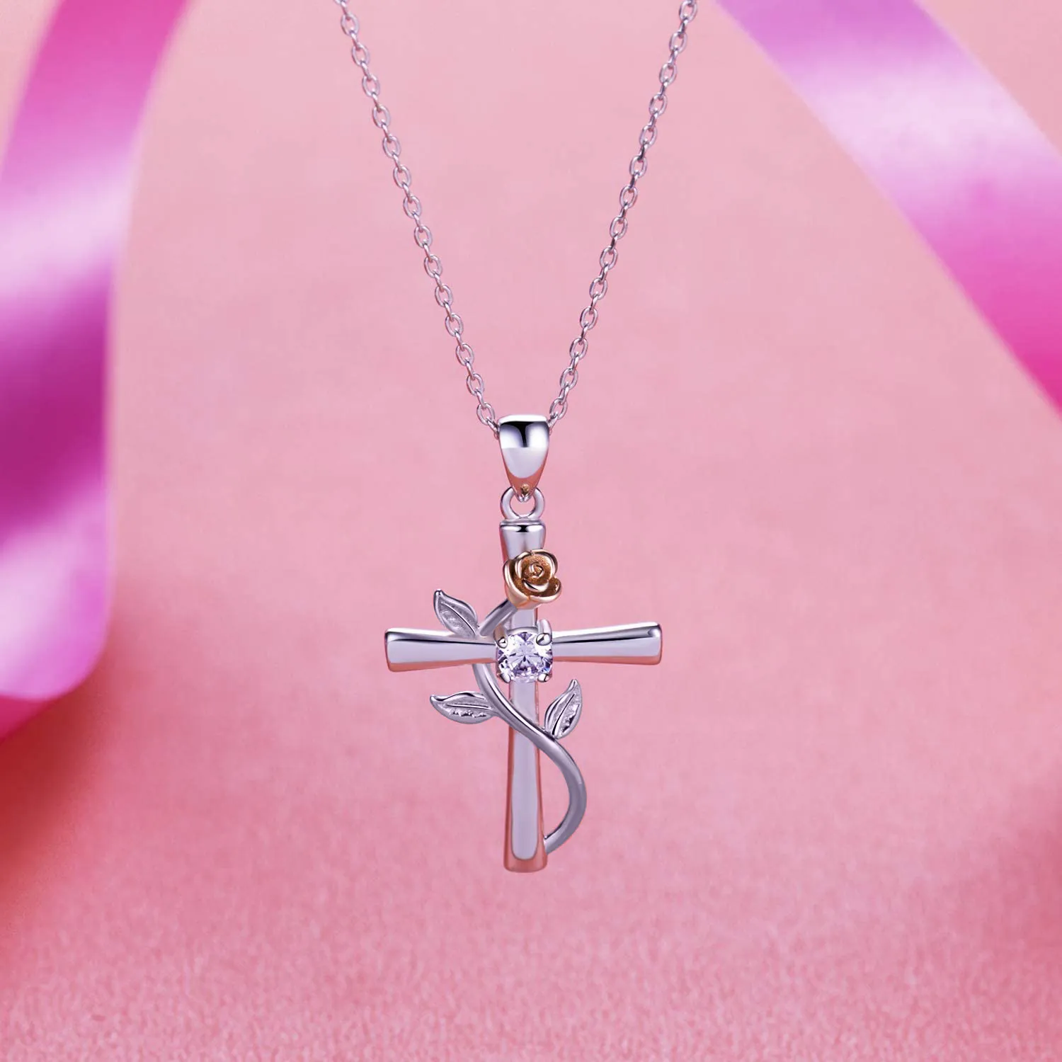 Classic Cross Rose Gold Necklace