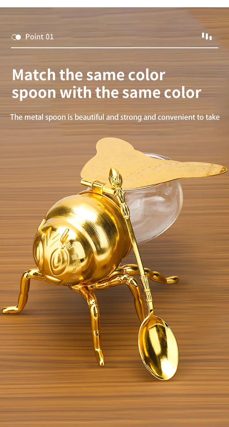 Classical Style Bee Sugar Bowl Seasoning Jar With Spoon Metal Crafts Kitchen Gadgets
