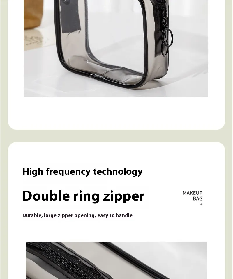Our clear PVC storage bags are made from durable, high-quality materials designed to withstand everyday wear and tear. The PVC material is both lightweight and strong, providing a sturdy solution for storing a wide range of items. These bags are also resistant to moisture and dust, ensuring that your belongings stay clean and protected over time.
