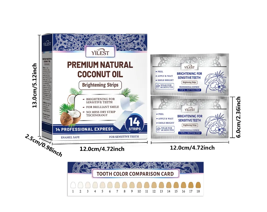 Designed for everyday use, each tooth patch adheres comfortably to your teeth, allowing the active ingredients to work effectively while you go about your daily routine. The coconut oil helps reduce plaque and surface stains, while the mint delivers long-lasting fresh breath. With a gentle, peroxide-free formula, these patches are perfect for sensitive teeth, offering a safe and natural alternative to harsh whitening products.
