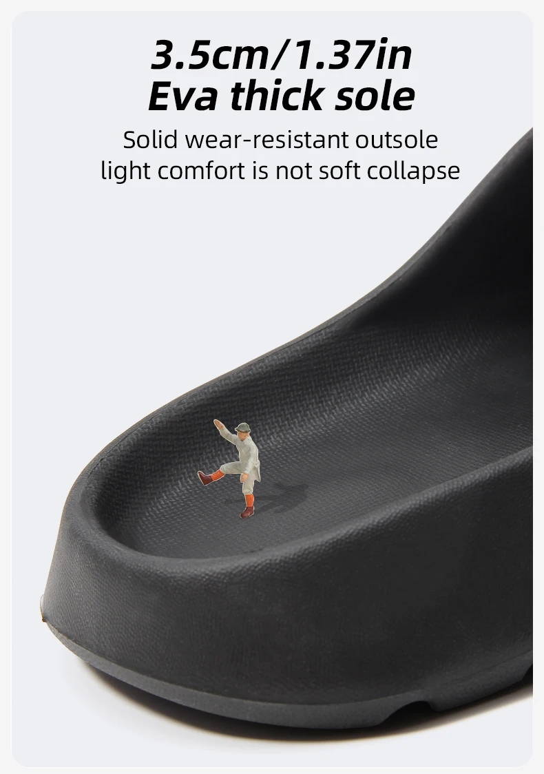 The thick soles of these slippers provide extra cushioning and support, ensuring maximum comfort with every step. The soles are designed to absorb shock and evenly distribute your weight, reducing strain on your feet and joints, making them ideal for prolonged use.