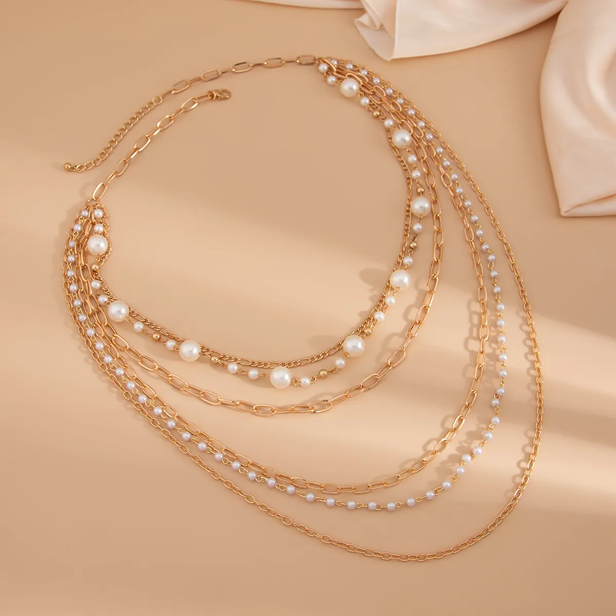 Cold Stringed Pearls Long Necklace Suit