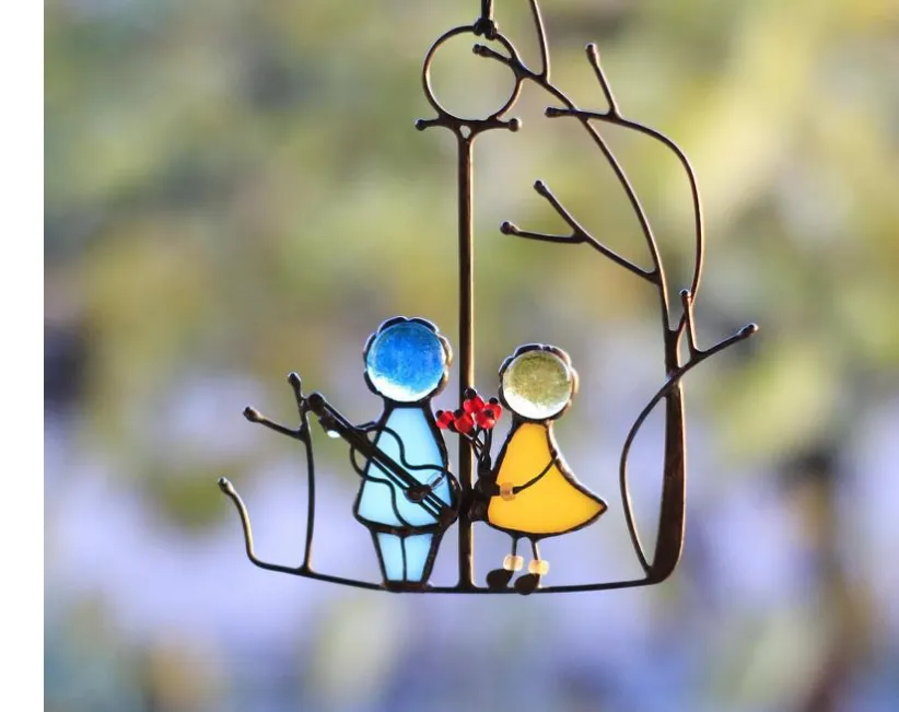 Color Art Window Pendant Angel Couple Decoration Gift: A Stunning Gift of Love and Elegance