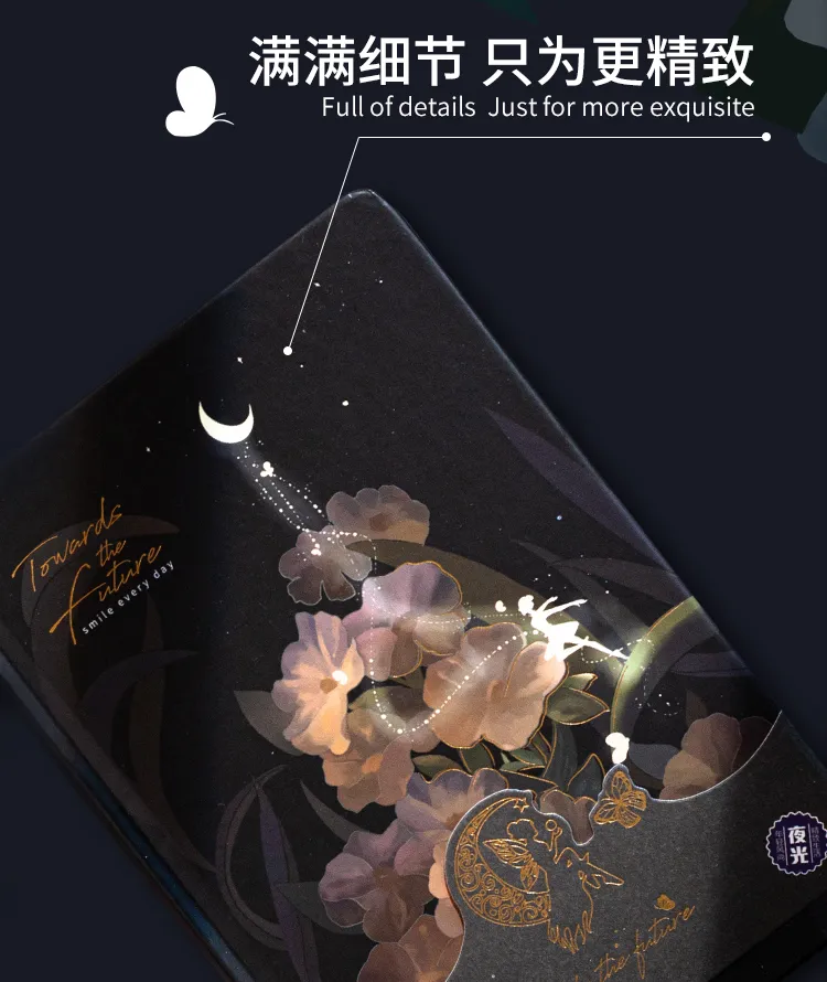 Its compact A5 size, smooth pages, and unique luminous cover make it a standout addition to any desk or bag, offering both style and utility in one thoughtful package.