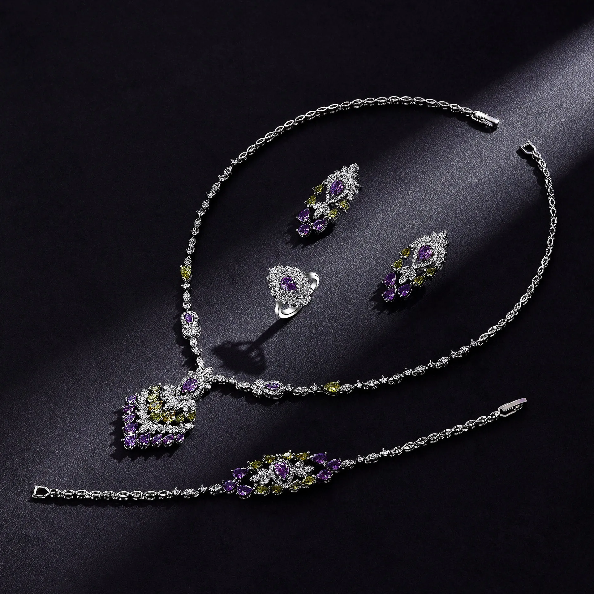 Why Choose the Color Zirconium Necklace and Earrings 4-Piece Set?