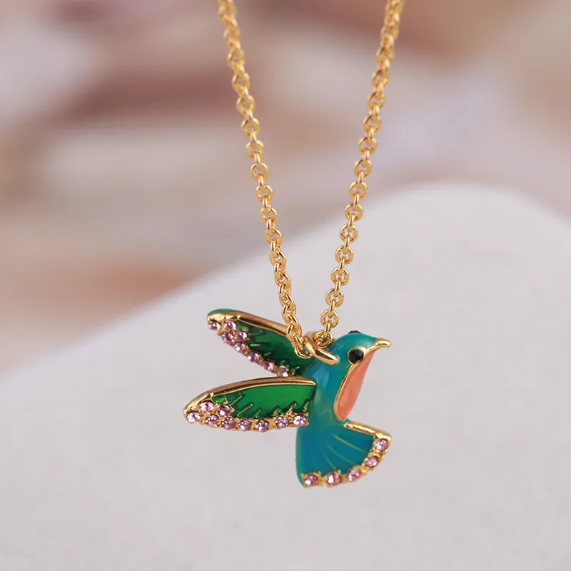 Colorful Diamond Three-dimensional Hummingbird Pendant