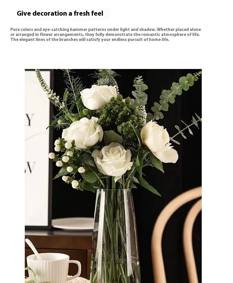 Designed with a balanced silhouette that supports floral arrangements of varying heights and styles, this vase accommodates roses, lilies, wildflowers, and more with grace. Its stable base and well‑proportioned neck make arranging flowers easy, while the durable glass construction ensures lasting beauty. Whether filled with seasonal blooms or displayed empty as an aesthetic object, this vase elevates interior spaces with its artistic presence.