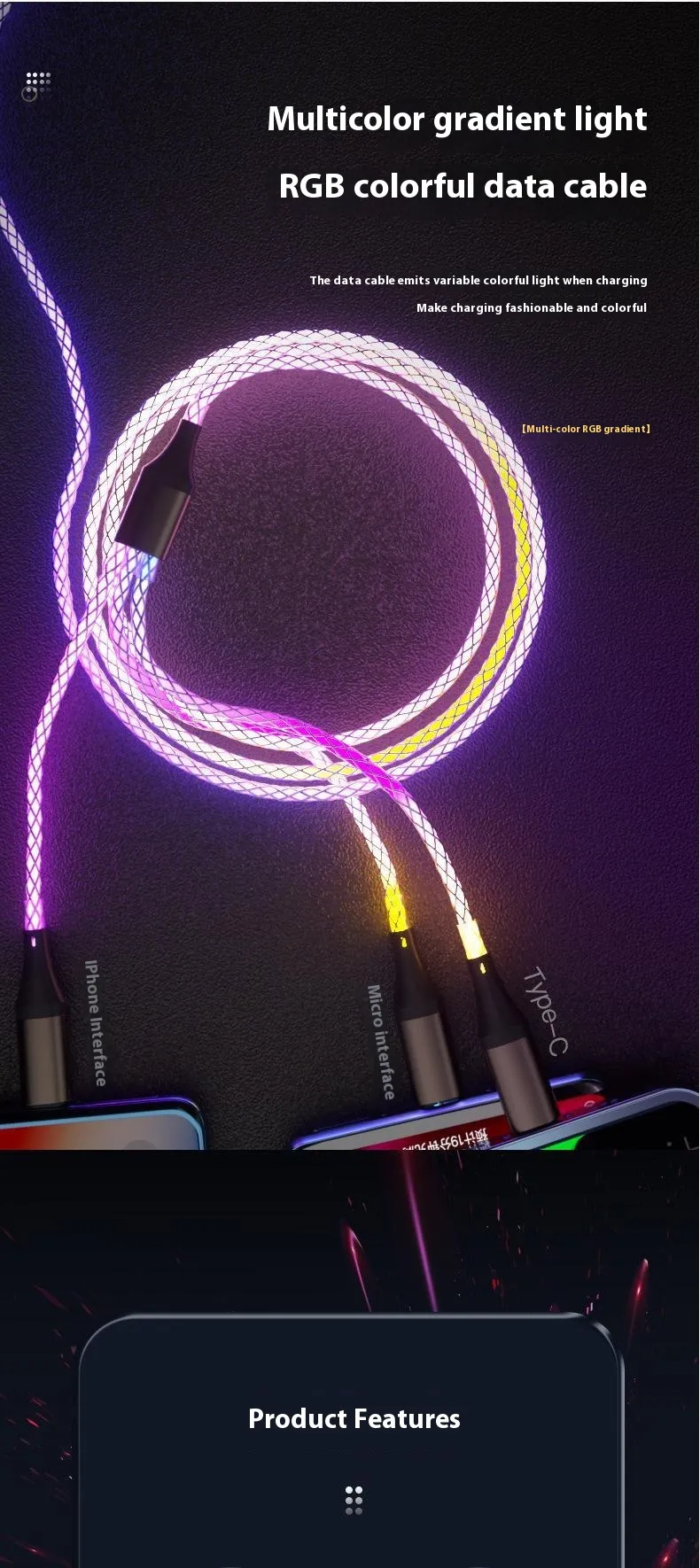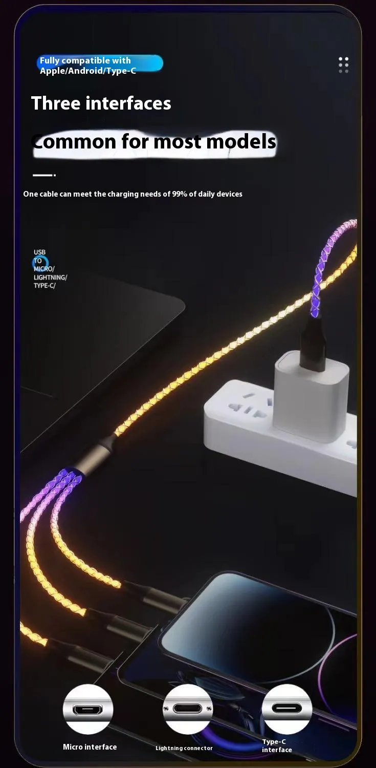 Colorful RGB One-to-three Streamer 66W Data Cable