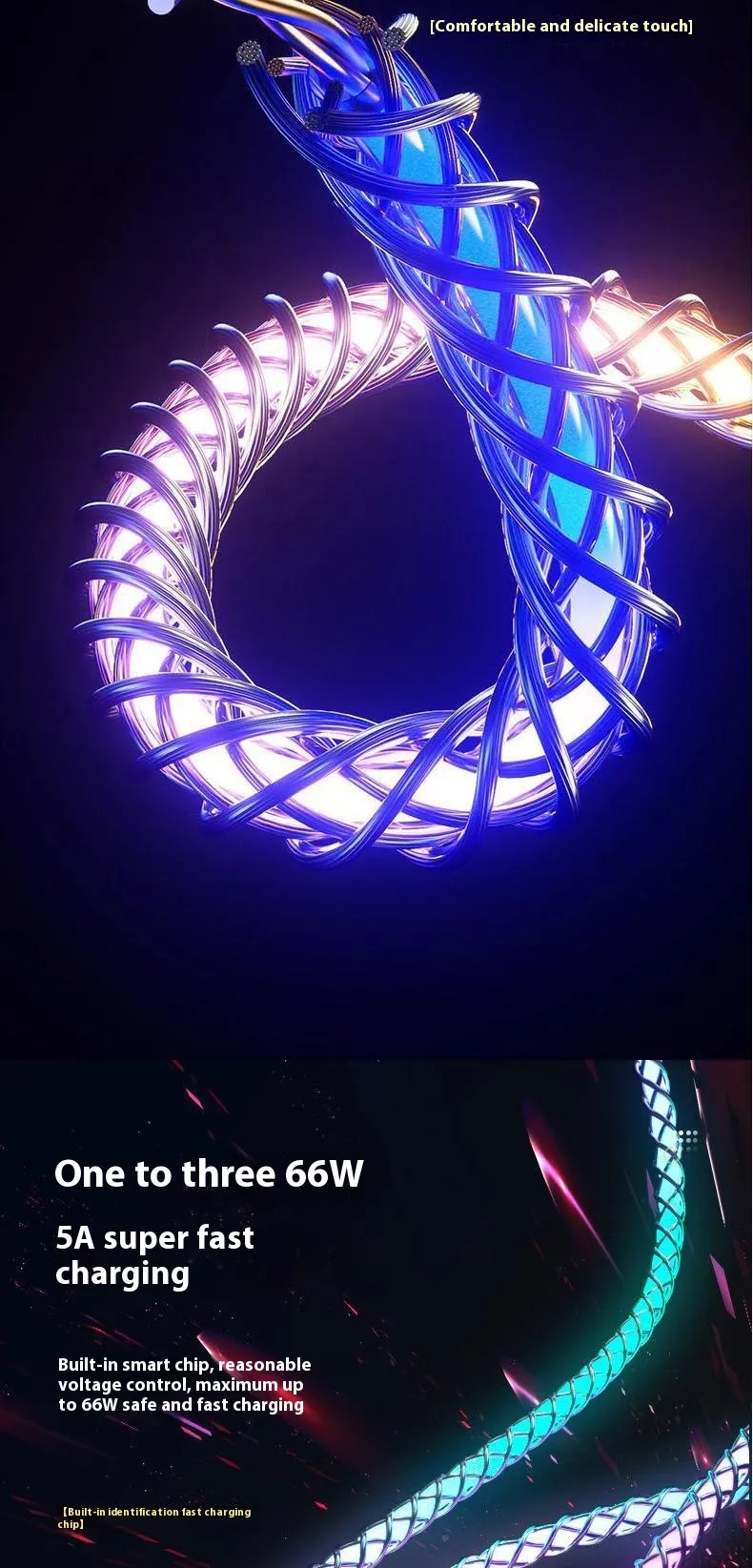 This innovative one-to-three cable allows you to charge three devices simultaneously. With a 66W high-power output, it delivers fast and stable charging for smartphones, tablets, or other compatible electronics. Say goodbye to cluttered cables and multiple adapters.