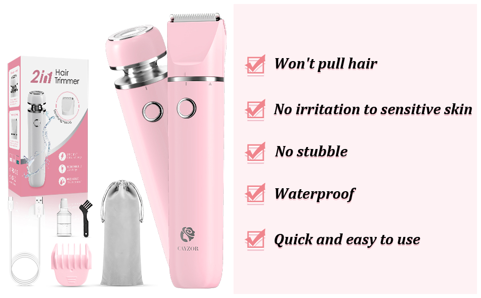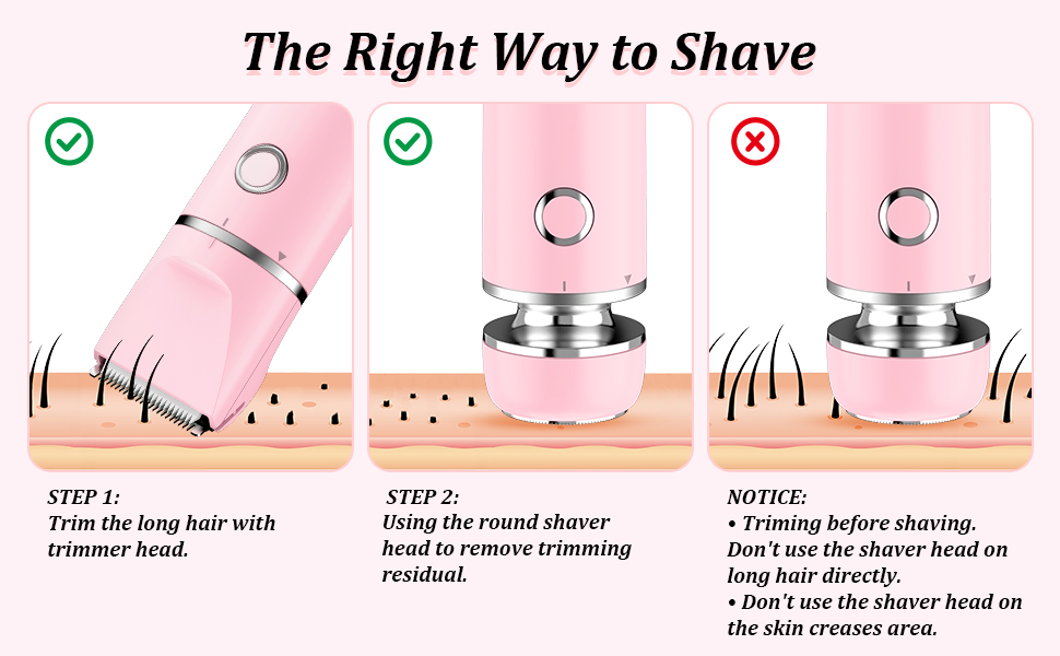 - WET AND DRY SHAVING: This women bikini trimmer is IPX7 waterproof design for both wet and dry use, suitable for both bath and shower. The detachable shaver head is easy to clean and can be washed under running water, making it suitable for travel or daily use