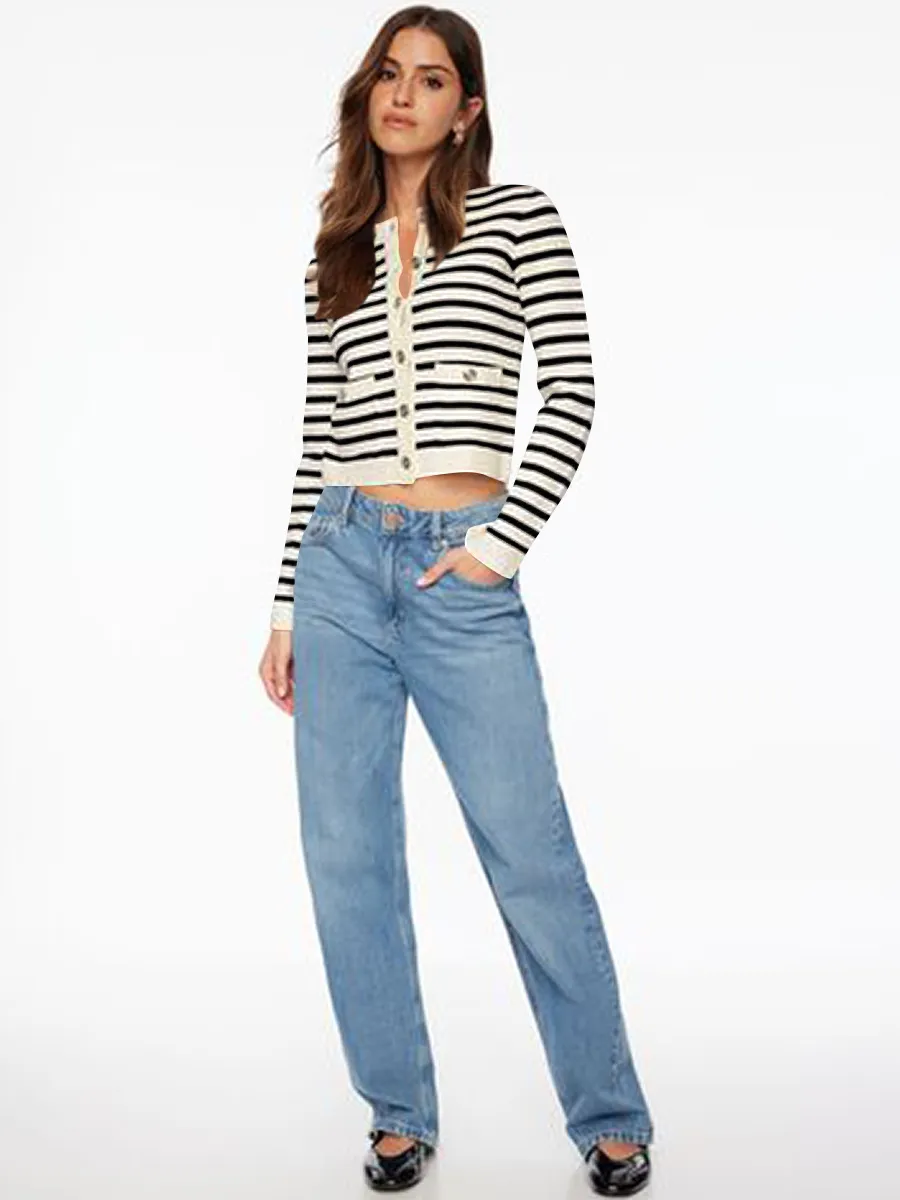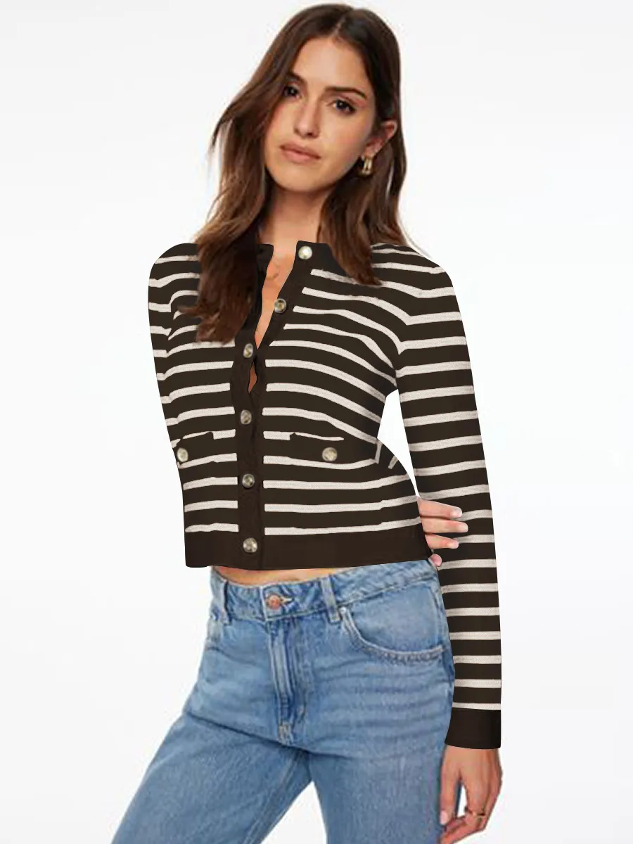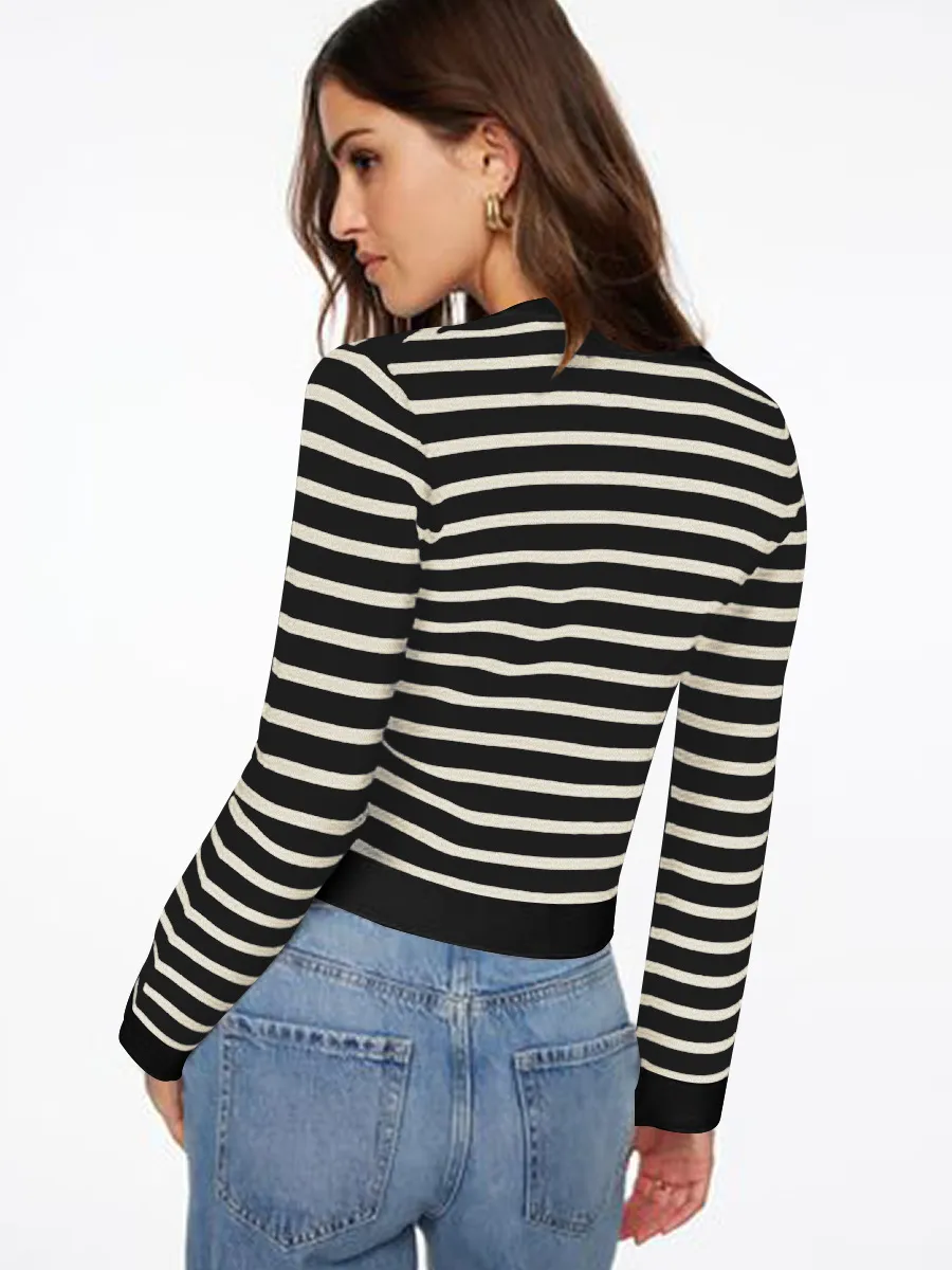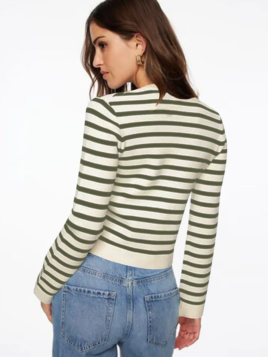 Comfort And Casual Long Sleeve Striped Button Top