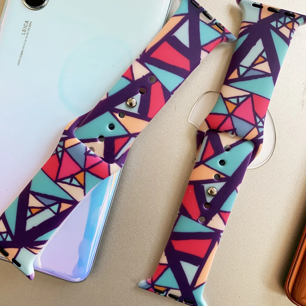 Compatible with Apple Watch iWatchSE Printed Silicone Strap Pattern