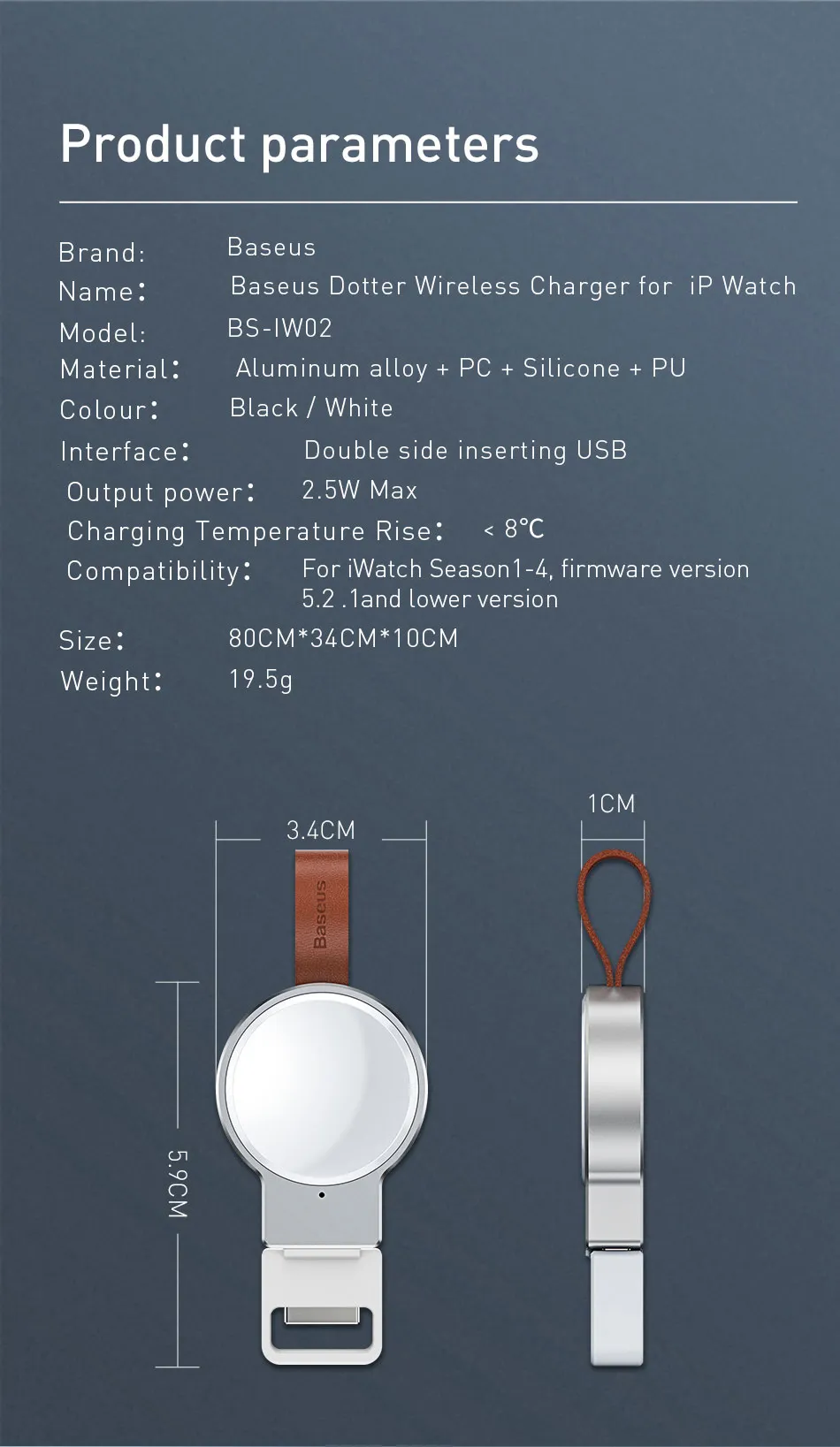 Its compact size and portability make this charger the perfect accessory for people who are always on the go. Whether you're at the office, traveling, or on vacation, the Applicable Watch Charger ensures that your smartwatch is always ready for use.