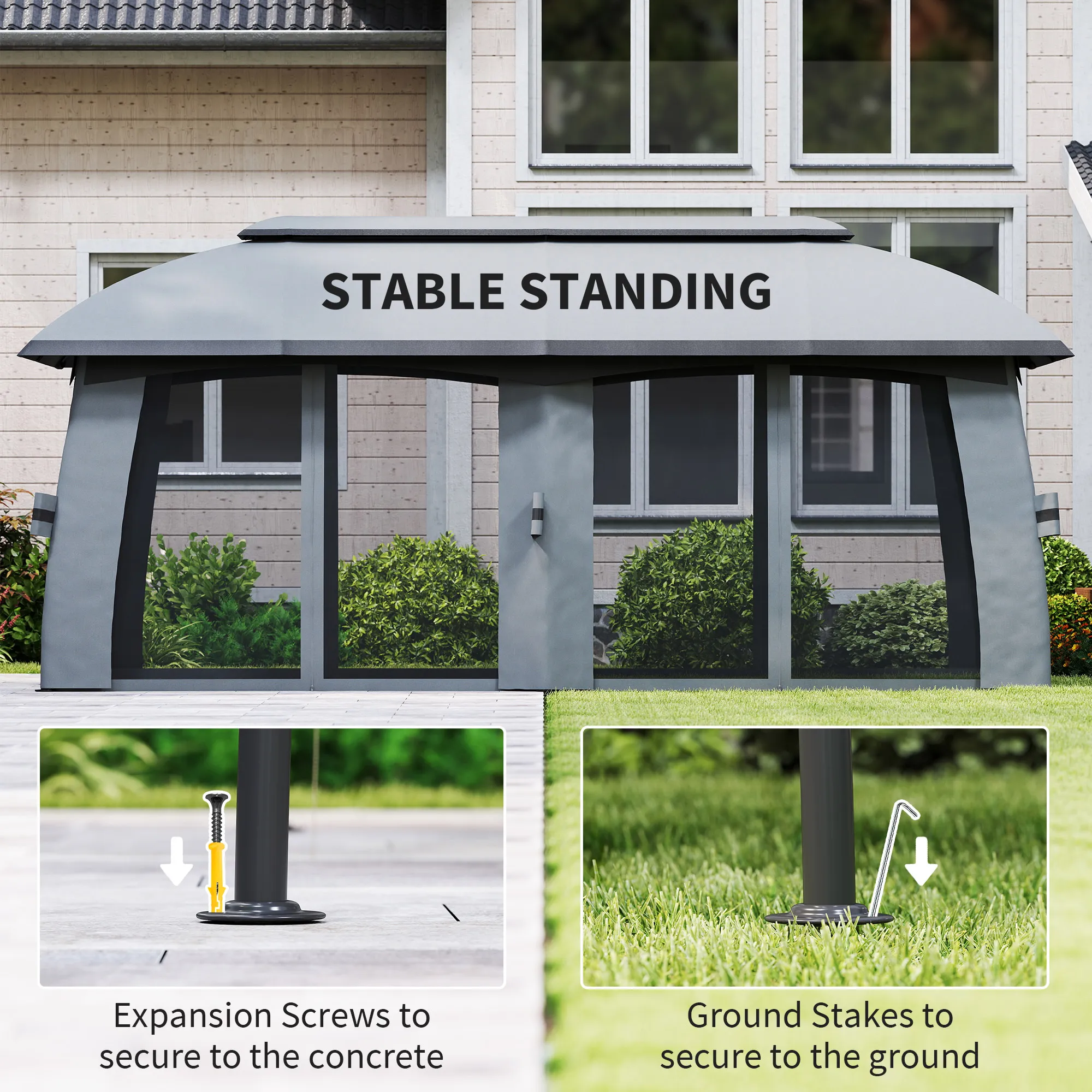 The modern design of the gazebo adds a touch of sophistication to your outdoor area, elevating the overall aesthetic of your garden, patio, or commercial space.