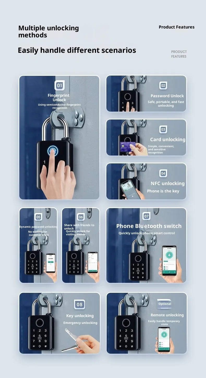 This padlock is perfect for warehouse managers, logistics operators, homeowners, and business owners in New Zealand seeking high-security access control without traditional keys. It’s designed for courtyard gates, storage units, delivery trucks, and equipment boxes, where durable, keyless entry enhances safety and convenience. The padlock suits anyone who values modern, fingerprint-based technology for reliable and fast access control.