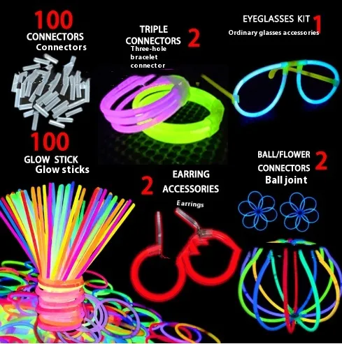 100 glowsticks +100 joints +1 pair of common eye + 2 ball joints + 2 triple joints + 2 earrings
