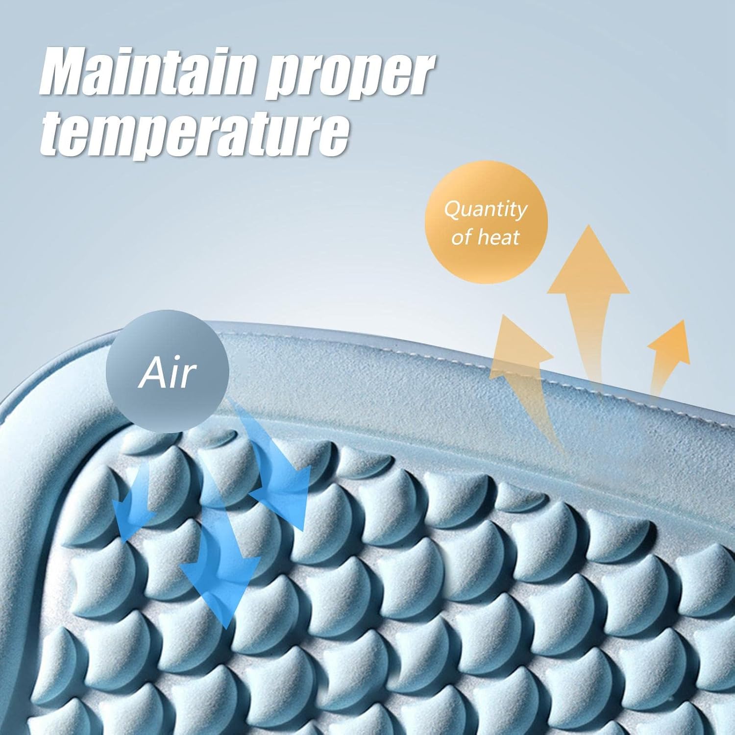 - The cushion is designed with a honeycomb structure, featuring prominent hexagonal breathable holes on the surface. This design allows for circulating ventilation, fast heat dissipation, and effective moisture removal. Say goodbye to the discomfort of a hot and stuffy seat as the cushion keeps you cool and comfortable, even during long drives.