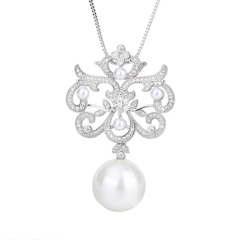 Copper Sole Gold-plated Inlaid Fritillary Pearl Diamond Pendant Necklace