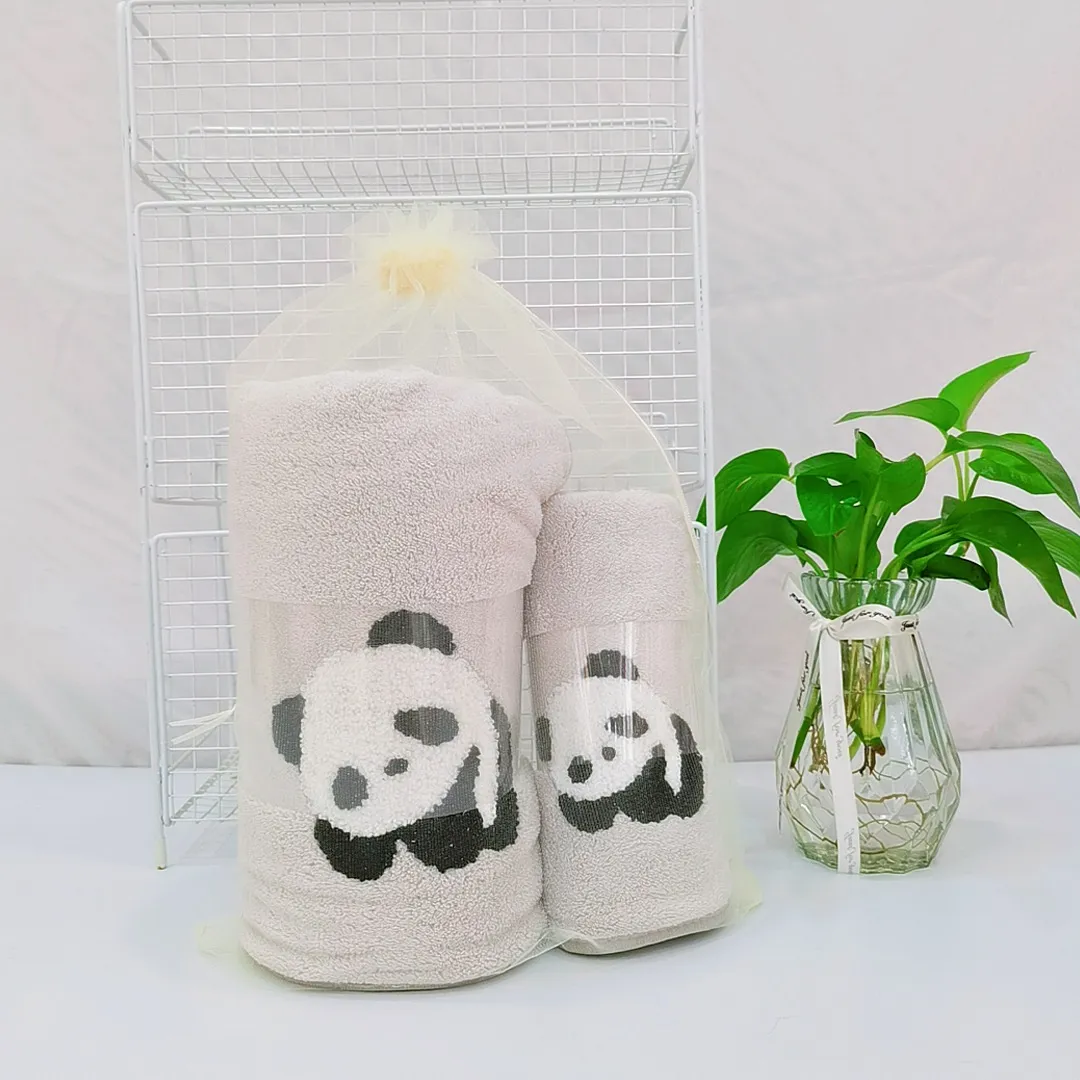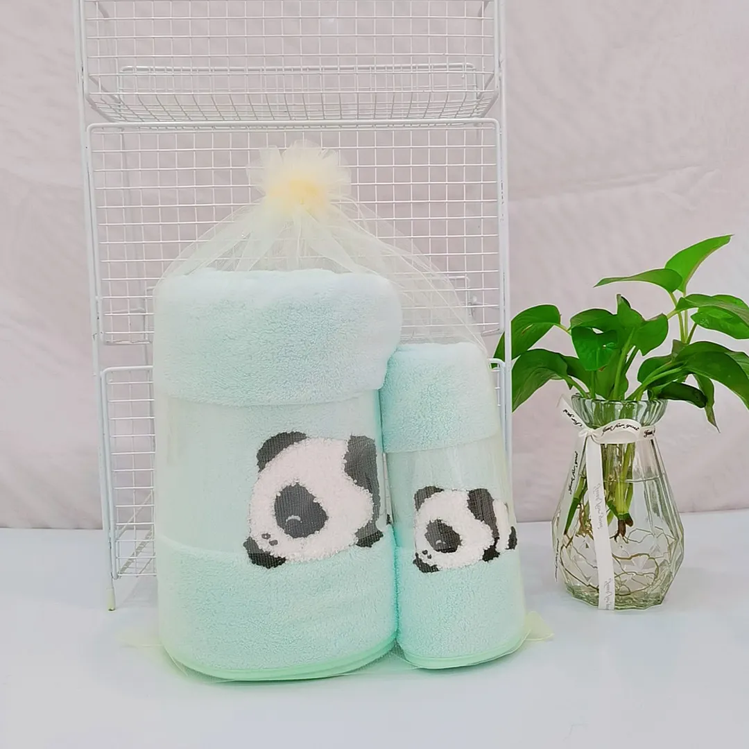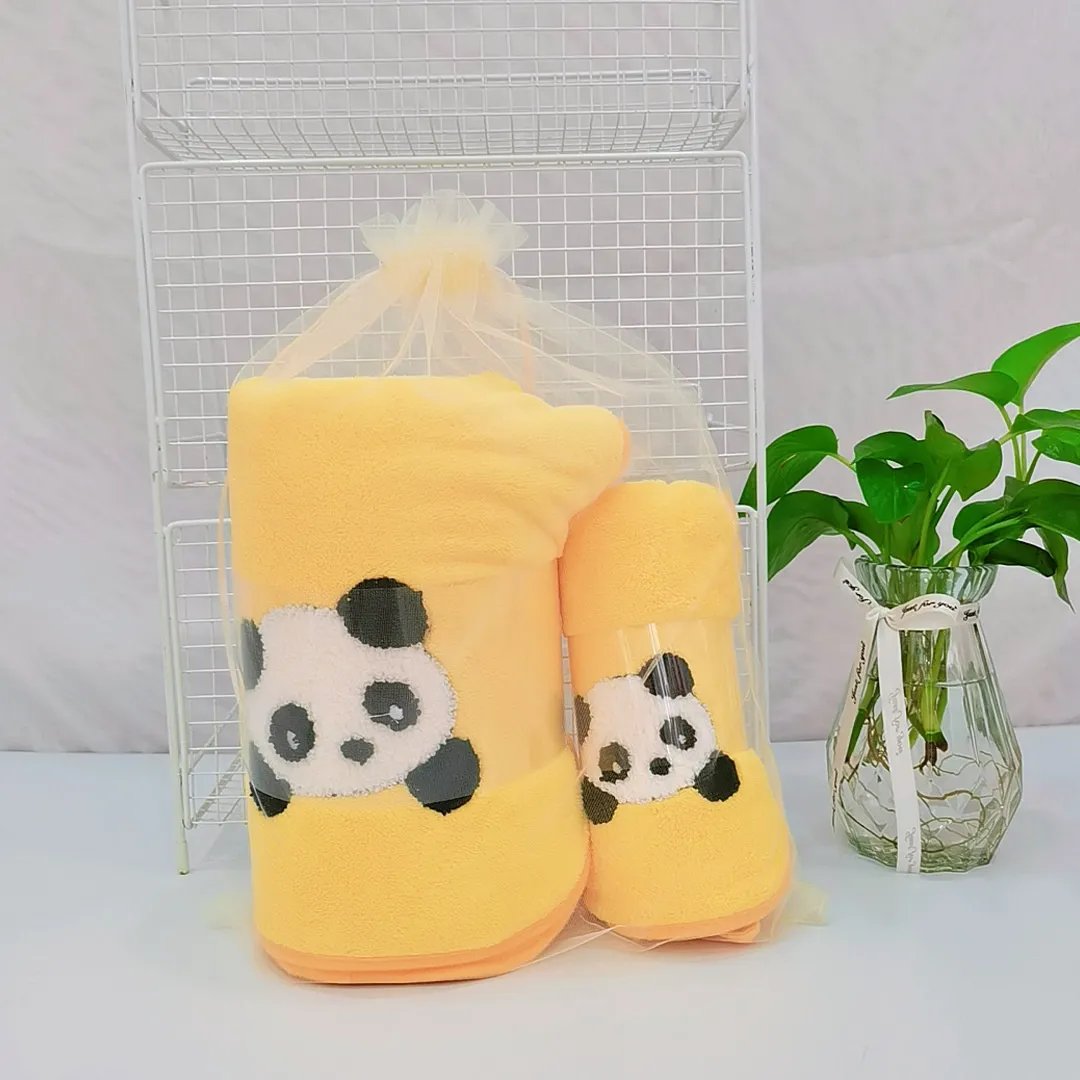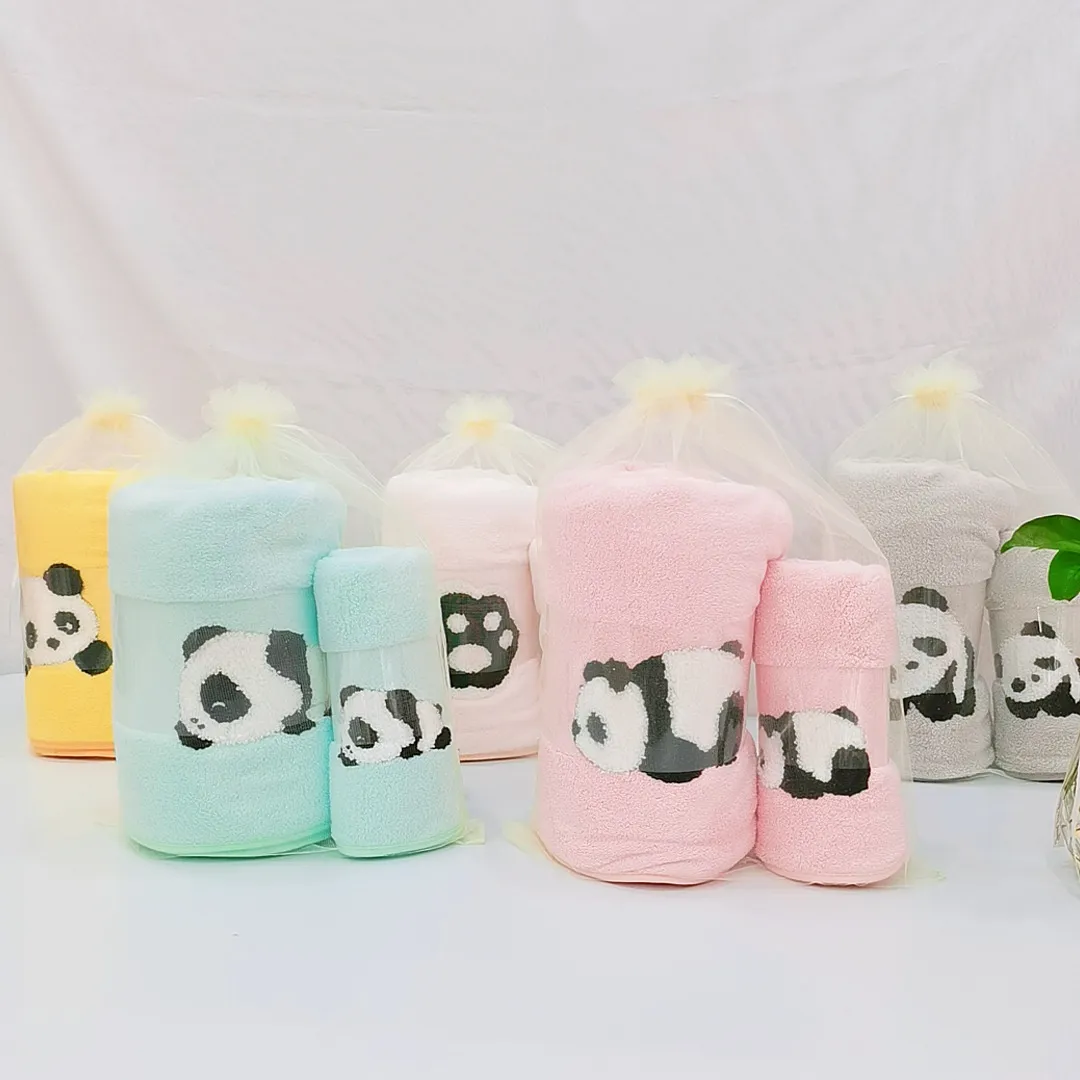 Coral Velvet Panda Embroidery Covers Soft And Absorbent