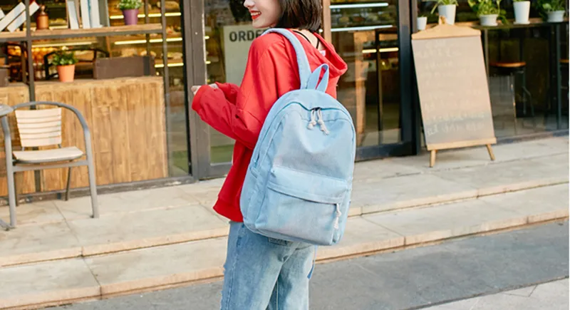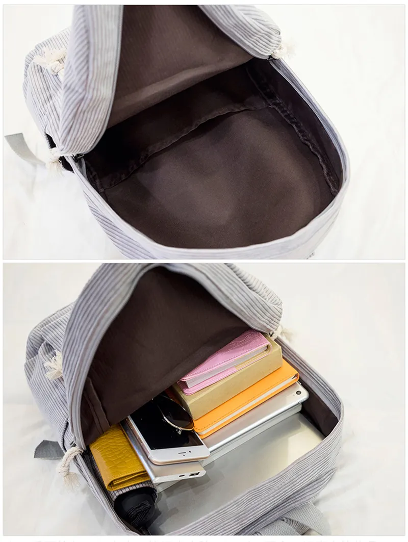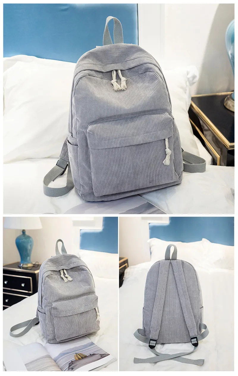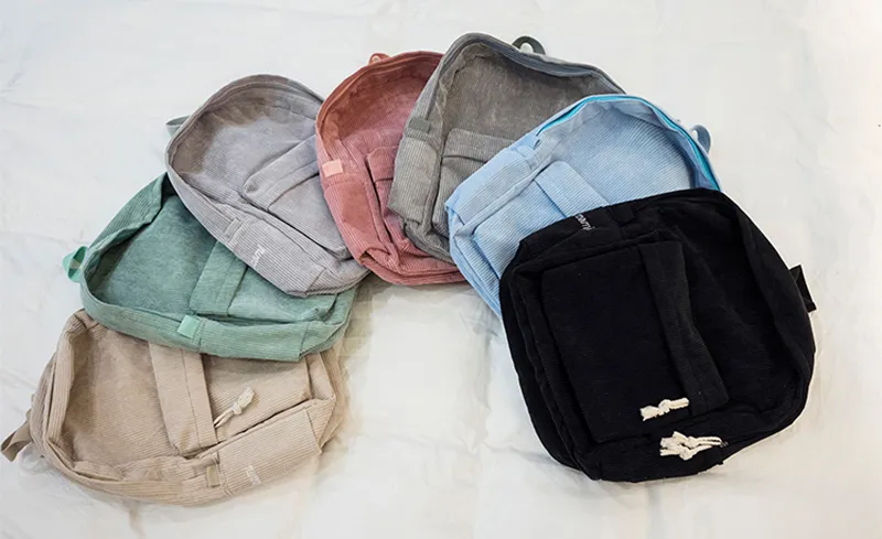 Corduroy Backpack Students Shoulder School Bags