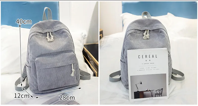 Corduroy Backpack Students Shoulder School Bags
