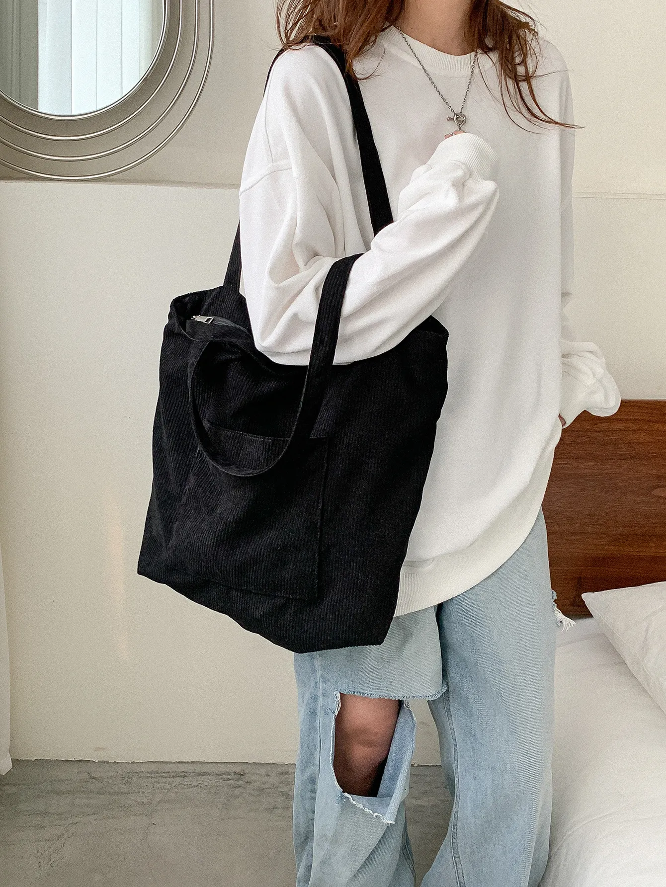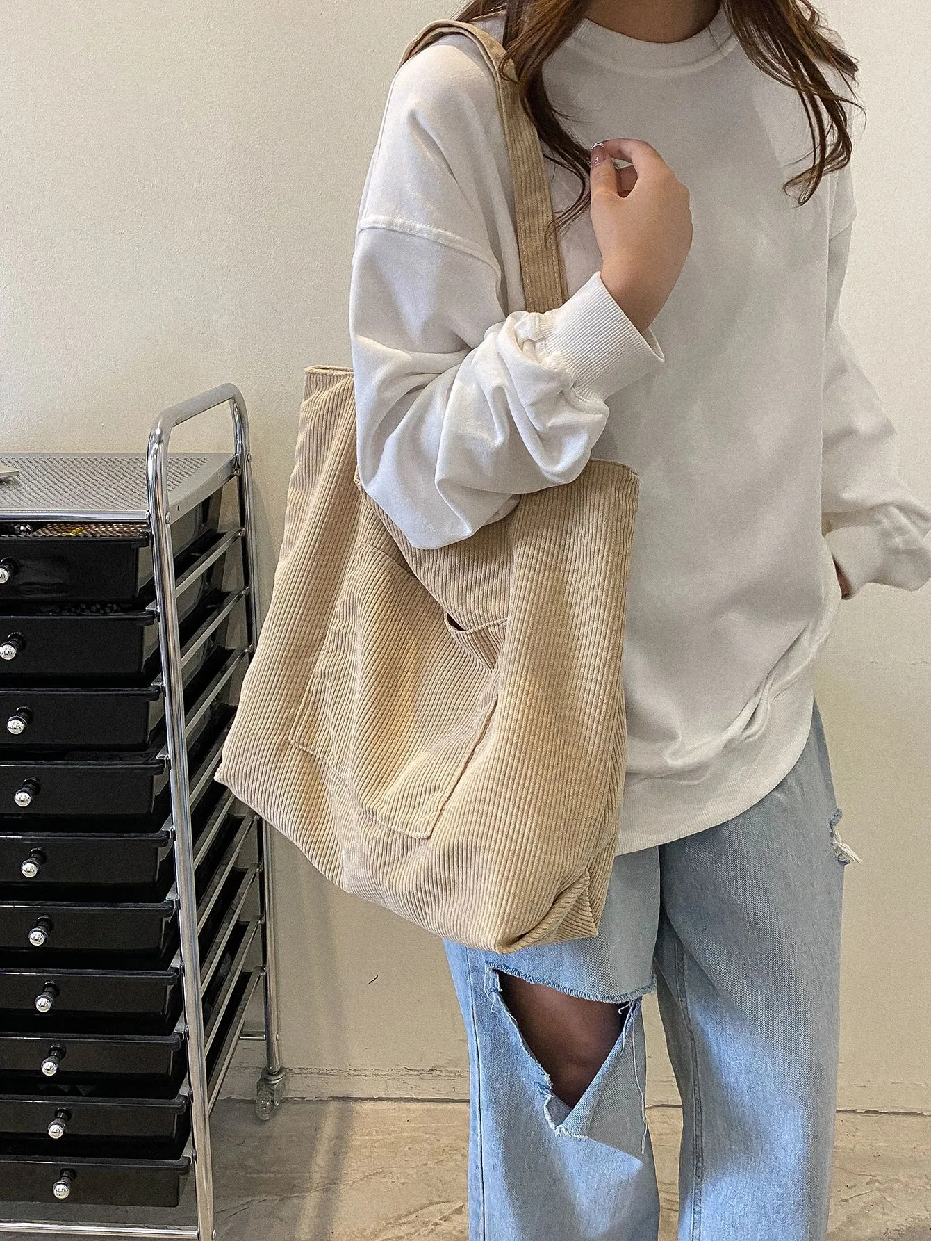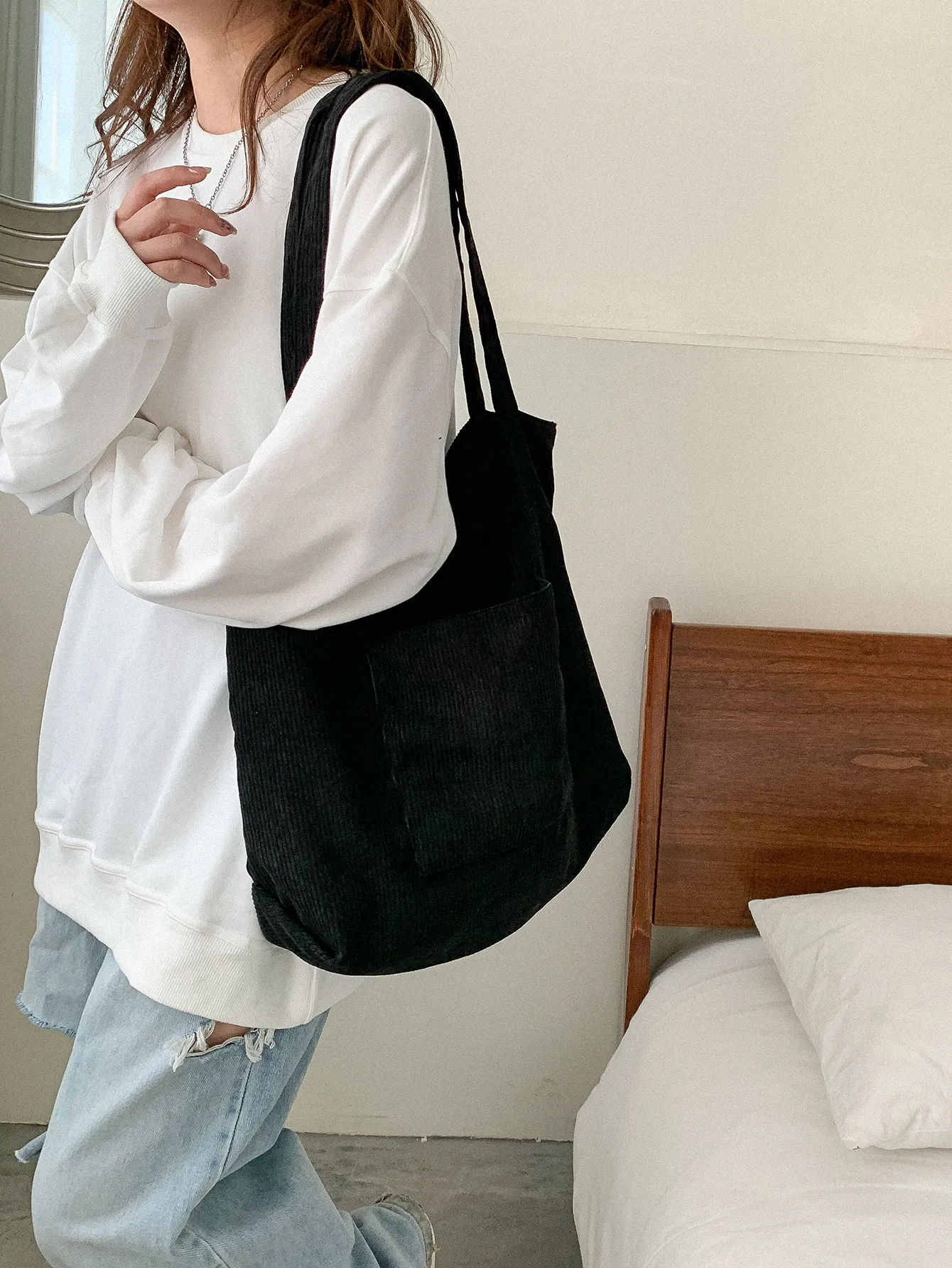 Corduroy Cloth Versatile Large Capacity Shoulder Bag Literary Handbag