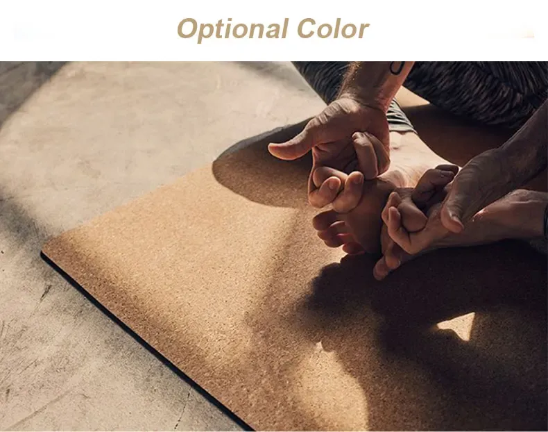 The natural cork surface feels smooth and warm underfoot, reducing irritation compared to synthetic mats.