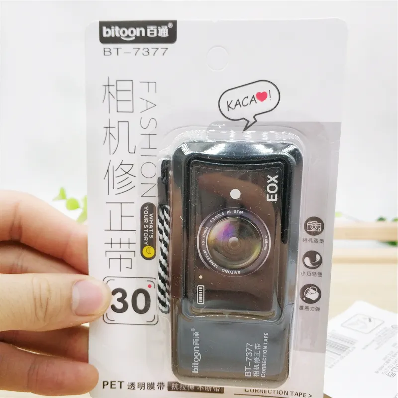 - Fun, cartoon camera design – A playful and unique take on standard correction tapes.