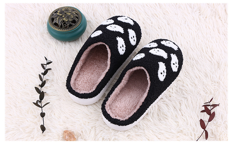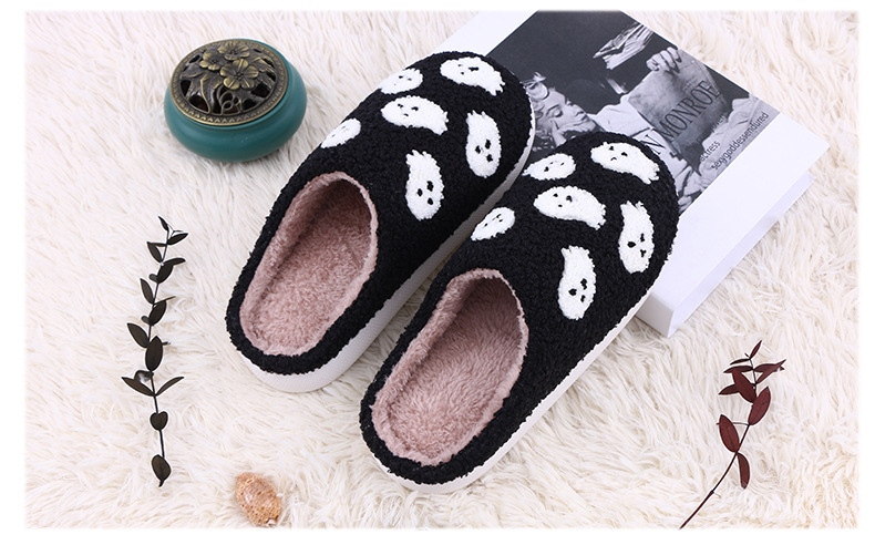 Design and Material These slippers are made from high-quality plush cotton, offering a soft and comfortable feel that your feet will love. The cute ghost cartoon design adds a fun and festive touch, making these slippers a great choice for Halloween or year-round wear. The upper material is plush, providing a luxurious texture, while the interior is lined with warm, breathable cotton to keep your feet snug during the colder months.